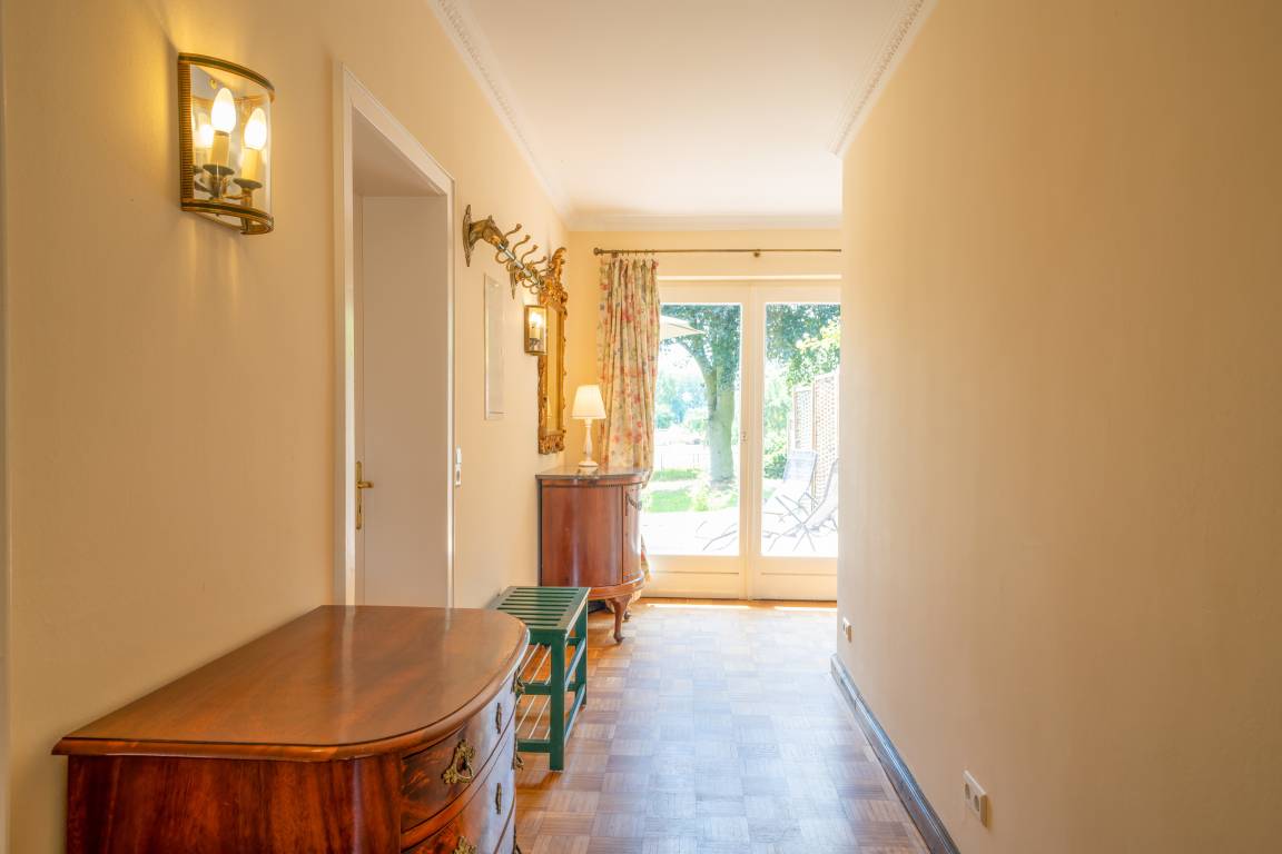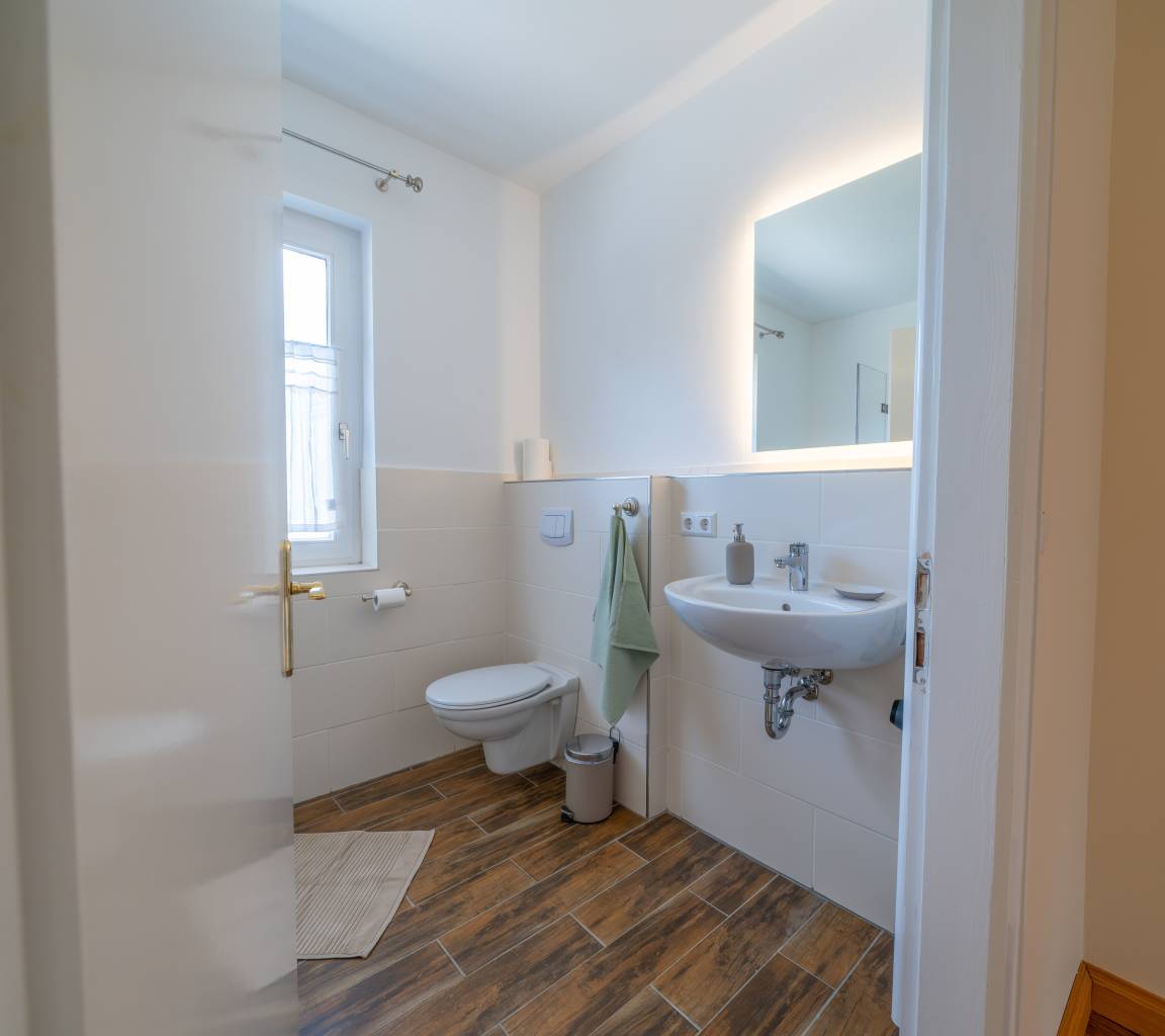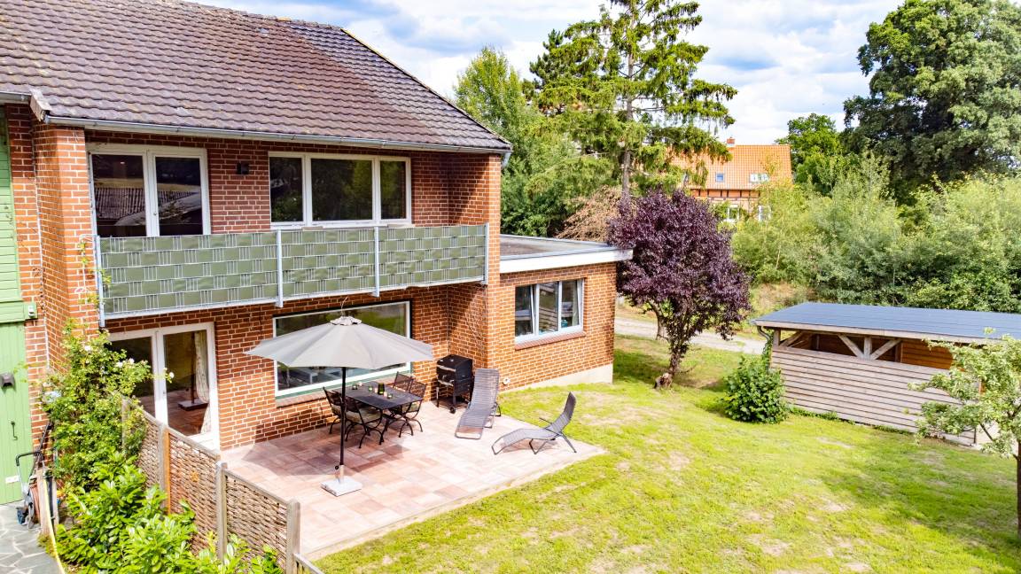 Von der großen Terrasse und dem Balkon blicken Sie ganz entspannt ins Grüne. Mit viel Liebe zum Detail und hochwertigen Antiquitäten eingerichtet, wurde hier auf großzügigen 120 qm ein Urlaubsparadies für Familien, Wanderer, Reiter, Jäger und Naturbegeisterte geschaffen.