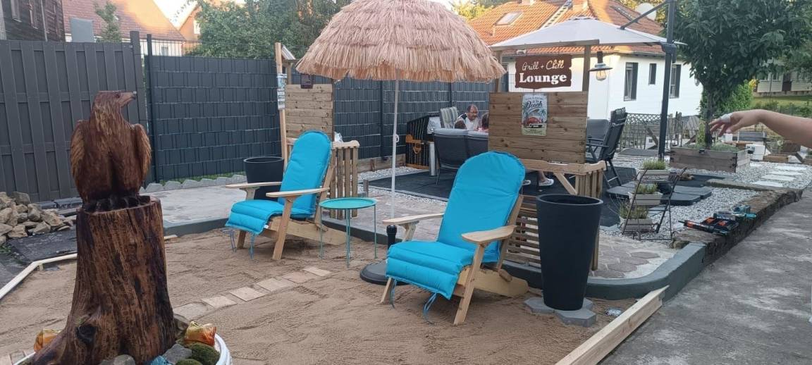 Liebevolle Details und vieles vieles mehr, sorgen für die Gemütlichkeit im Wohnbereich und für Behaglichkeit zu jeder Jahreszeit. Terrasse, Strandbeach Relaxbereich befinden sich im Gästegarten.