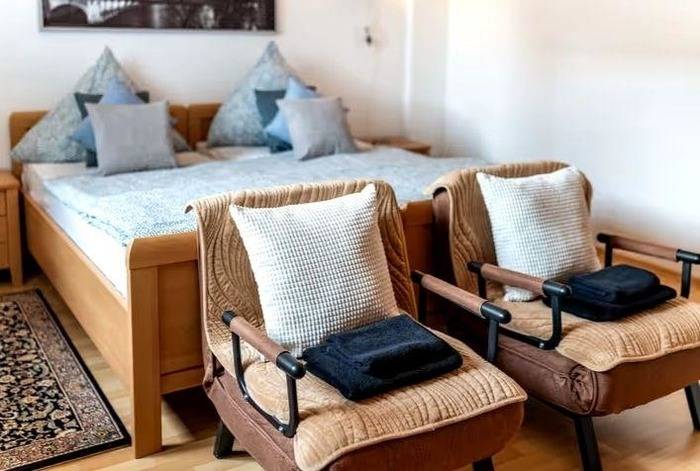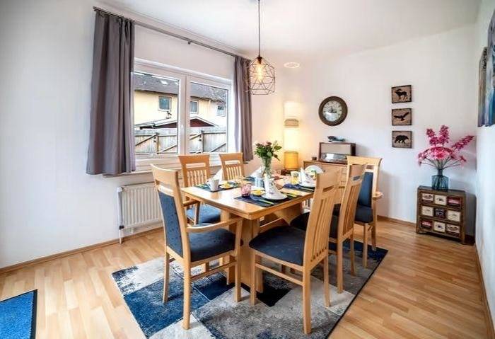 Eigene abschließbare helle Nichtraucher Wohnung 100 qm im EG. Helle, stilvolle, sehr saubere und gepflegte Einrichtung mit liebevollen Details. W-Lan Zugang kostenfrei. Wohnbereich mit Fire TV Stick, Bluetooth Radio und Blu Ray. Haupt-Schlafzimmer mit Doppelbett 180 x 200 mit Gel-Auflage oder auf Wunsch mit 2 getrennten Betten und Kleiderschrank. 2. Schlafzimmer gegen Zusatzgebühr or Ort zubuchbar Kinderbetten sind zubuchbar vor Ort. Separates Esszimmer mit direkten Zugang zur Terrasse und Gäste-Gartennutzung. Küche modern und voll ausgestattet. Bad mit WC und Regendusche. Für Zentralheizung, Wasser und Strom sind inklusive. Bettwäsche und Handtücher sind im Preis nicht enthalten. Alle Zusatzleistungen wie Bettwäsche, Handtücher, Kinderbett, Haustier ect. werden mit der Kaution vor Ort verrechnet.