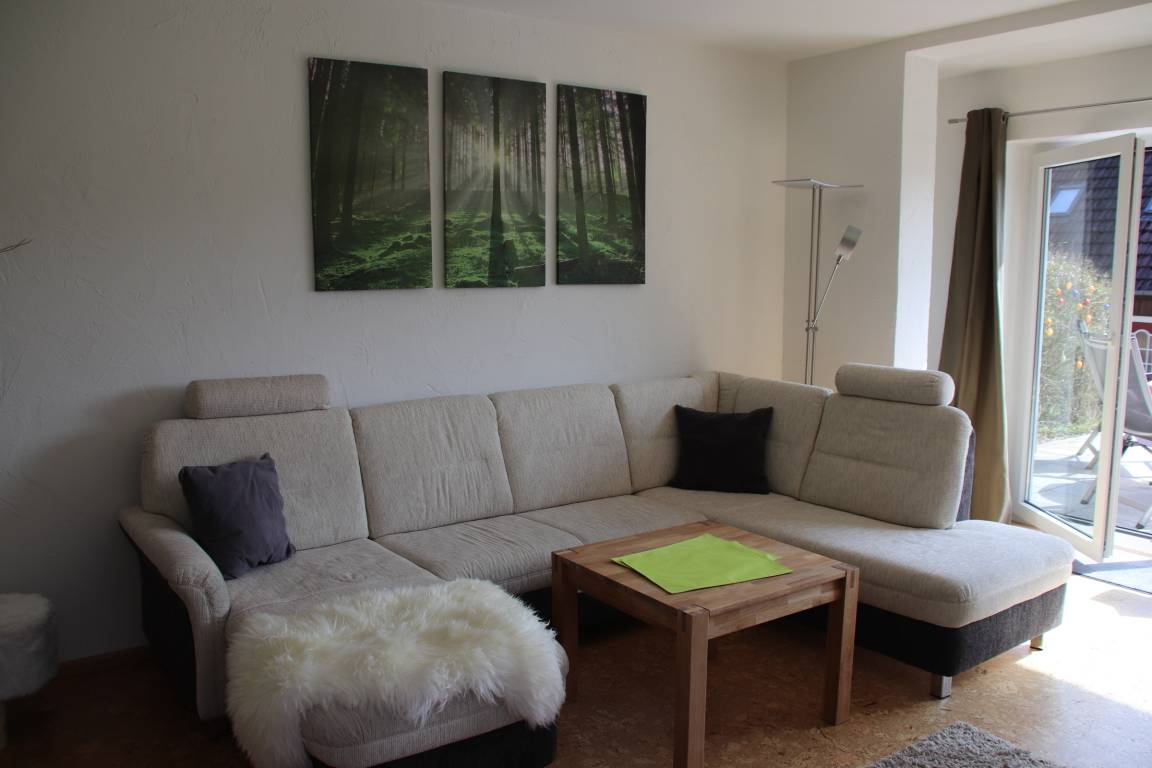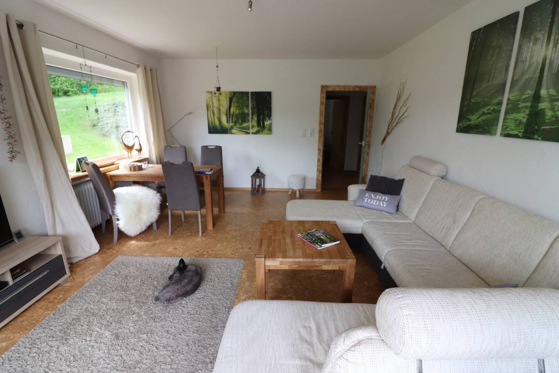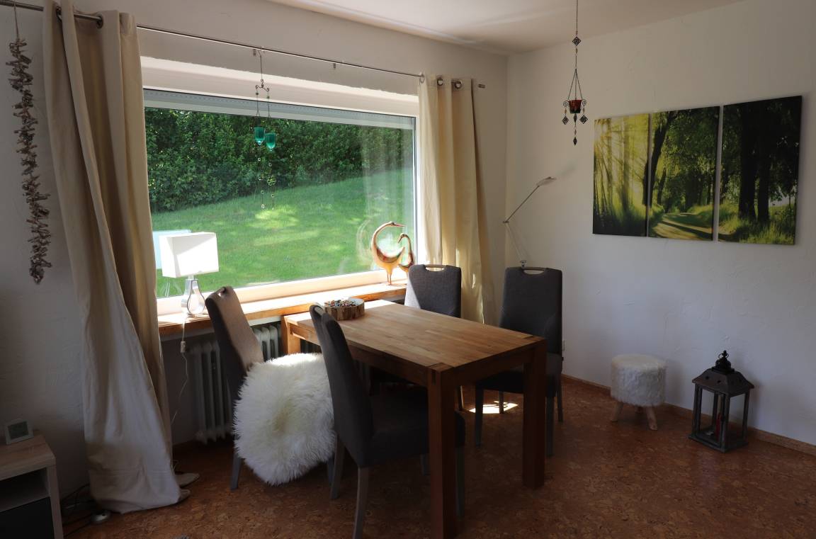 Wir haben die Wohnung im Ortsteil Bockswiese saniert und neu eingerichtet. Nun genießen Sie gern die vollausgestattete Küche, das neue Bad und das große Wohnzimmer mit Flachbildfernseher, WLAN oder ein gutes Buch. Neue Gesellschaftsspiele liegen bereit. Im Schlafzimmer erwartet Sie ein Vollholzbett mit hohem Einstieg und hochwertigen Matratzen. Die Terrasse bietet fast ganztags Sonne und einen herrlichen Blick über den Ort. Nachts erwartet Sie hier ein herrlicher Sternenhimmel.