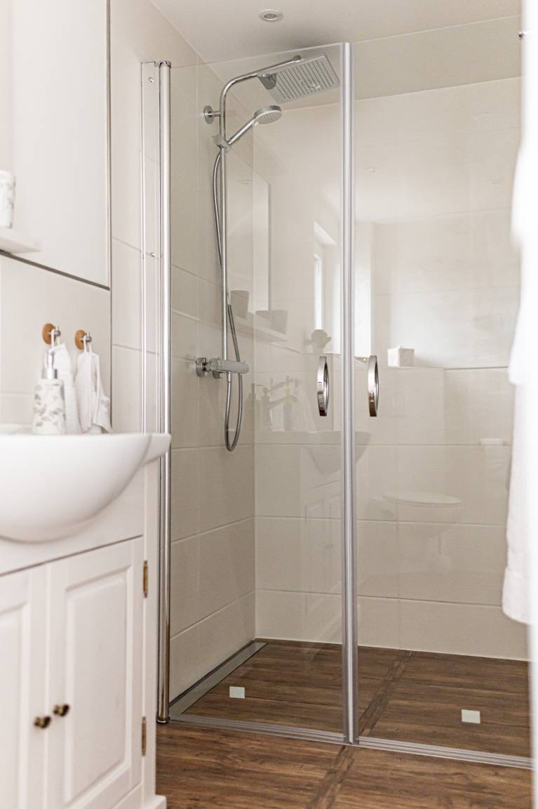 Das Badezimmer wurde ebenfalls komplett renoviert. Eine geräumige Regendusche sowie ein Fön und ein Spiegel sind vorhanden.
