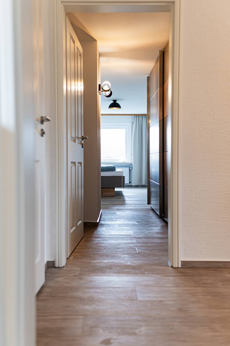 Die Ferienwohnung wurde 2022 komplett renoviert und ist 120 qm groß und für bis zu 6 Personen geeignet. Sie ist im 1.Obergeschoss eines Zwei-Familienhauses.
