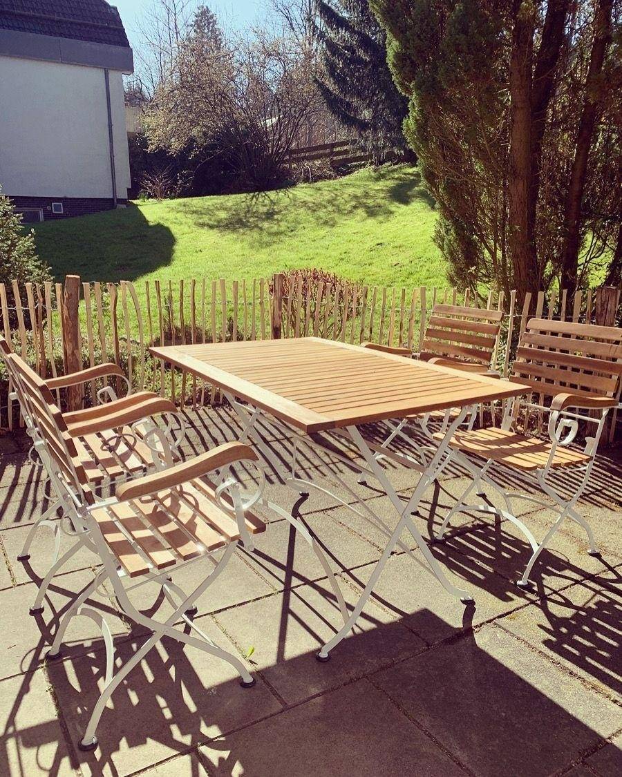 Die Terrasse verfügt über eine schöne Sitzgarnitur, einen Grill und ist eingezäunt.
