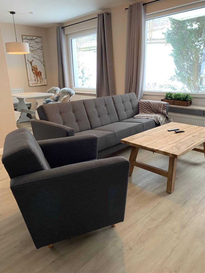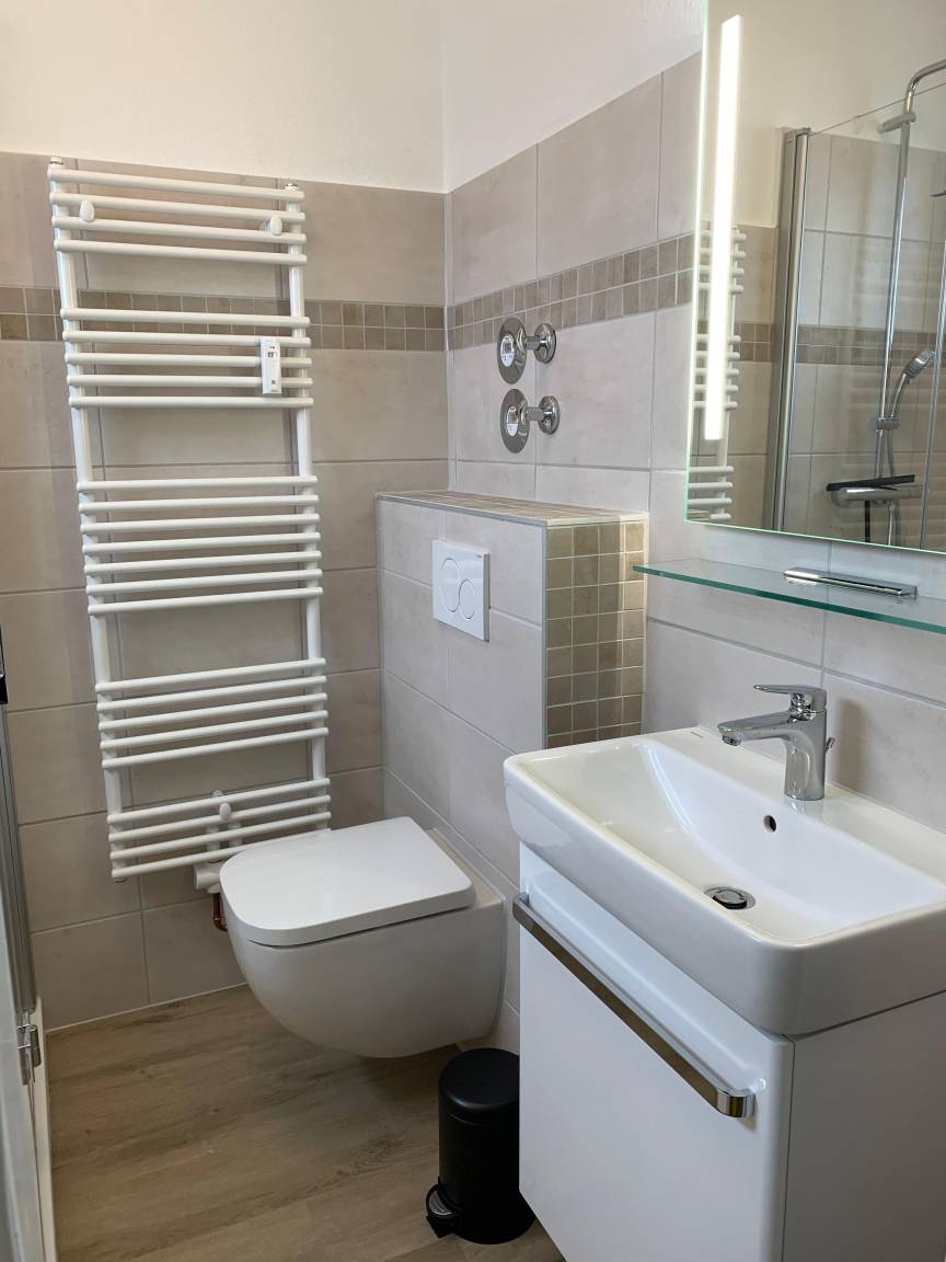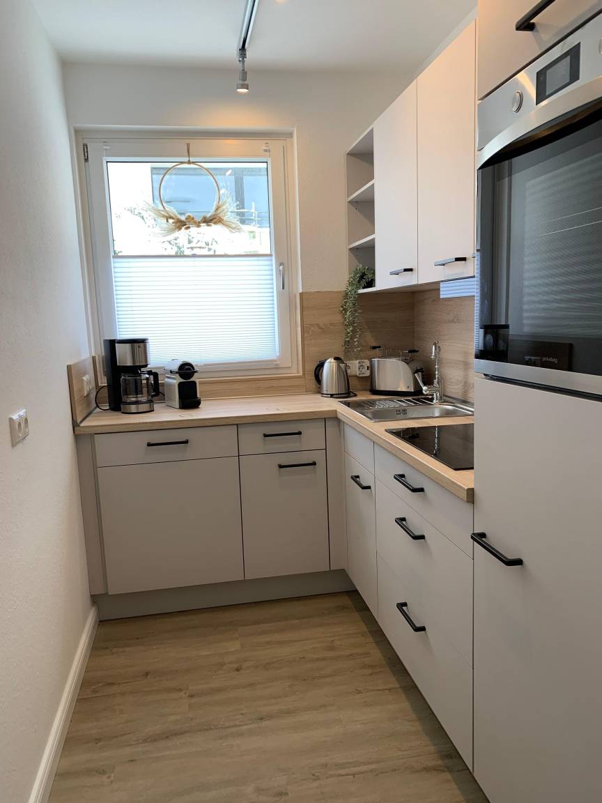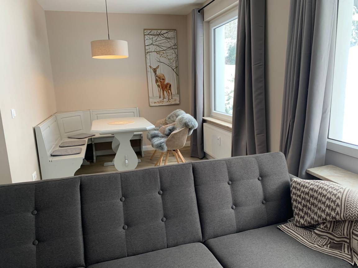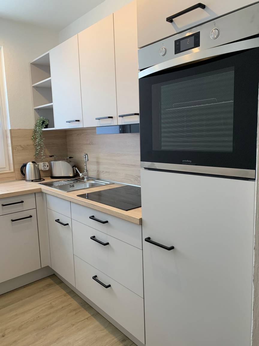 Geschmackvoll renovierte EG-Wohnung mit eingezäunter Terrasse in direkter Lage zu den Wanderwegen, aber dennoch sehr zentral. Sehr ruhige Eck-Wohnung mit Blick ins Grüne.