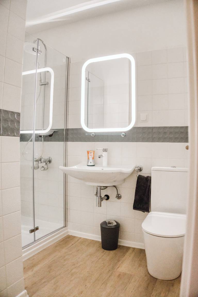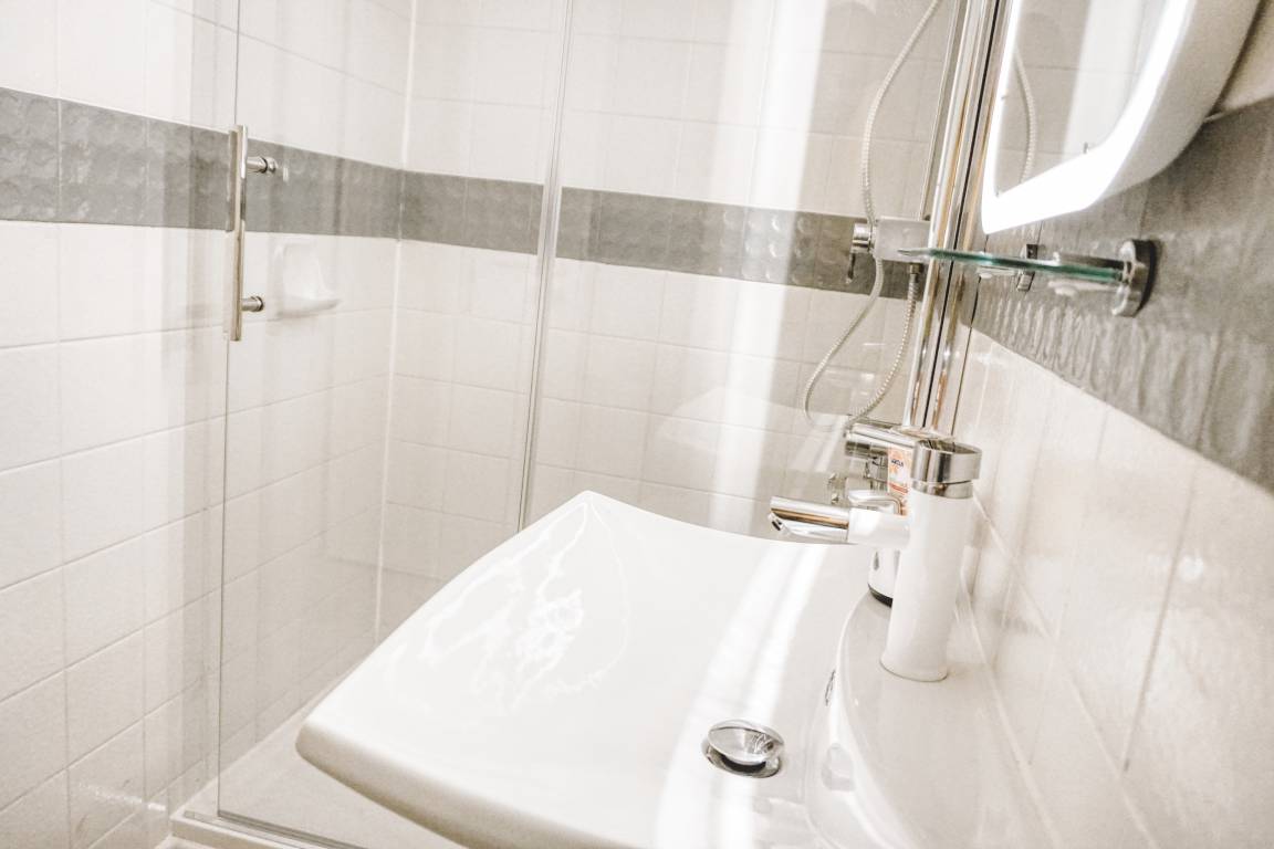 Das frisch renovierte Bad des Appartements begeistert mit moderner Ausstattung: Dusche, Stand-WC, Handtuchheizung und Föhn für Ihr Wohlbefinden. Die Pantryküche bietet mehr als nur Grundlagen – Kühlschrank, Ceranfeld, Wasserkocher, Senseo Kaffeemaschine, Toaster und alle Kochutensilien. Besteck und Geschirr sind selbstverständlich vorhanden. Abstellmöglichkeiten für Fahrräder und Skiausrüstung stehen im Haus zur Verfügung. Leider ist der Sauna- und Badebereich aufgrund von Bauarbeiten vorübergehend geschlossen.