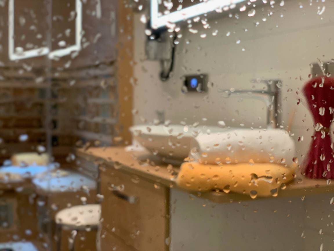 Den Tag starten Sie am Besten mit einer Erfrischung unter der großen Regenwalddusche. Für das Styling stehen Haartrockner, Kosmetikspiegel und ein beleuchteter Badspiegel zur Verfügung! Entspannen Sie und nehmen Sie ein Wellness-Bad oder saunieren Sie in der eigenen Infrarot-Wärmekabine!