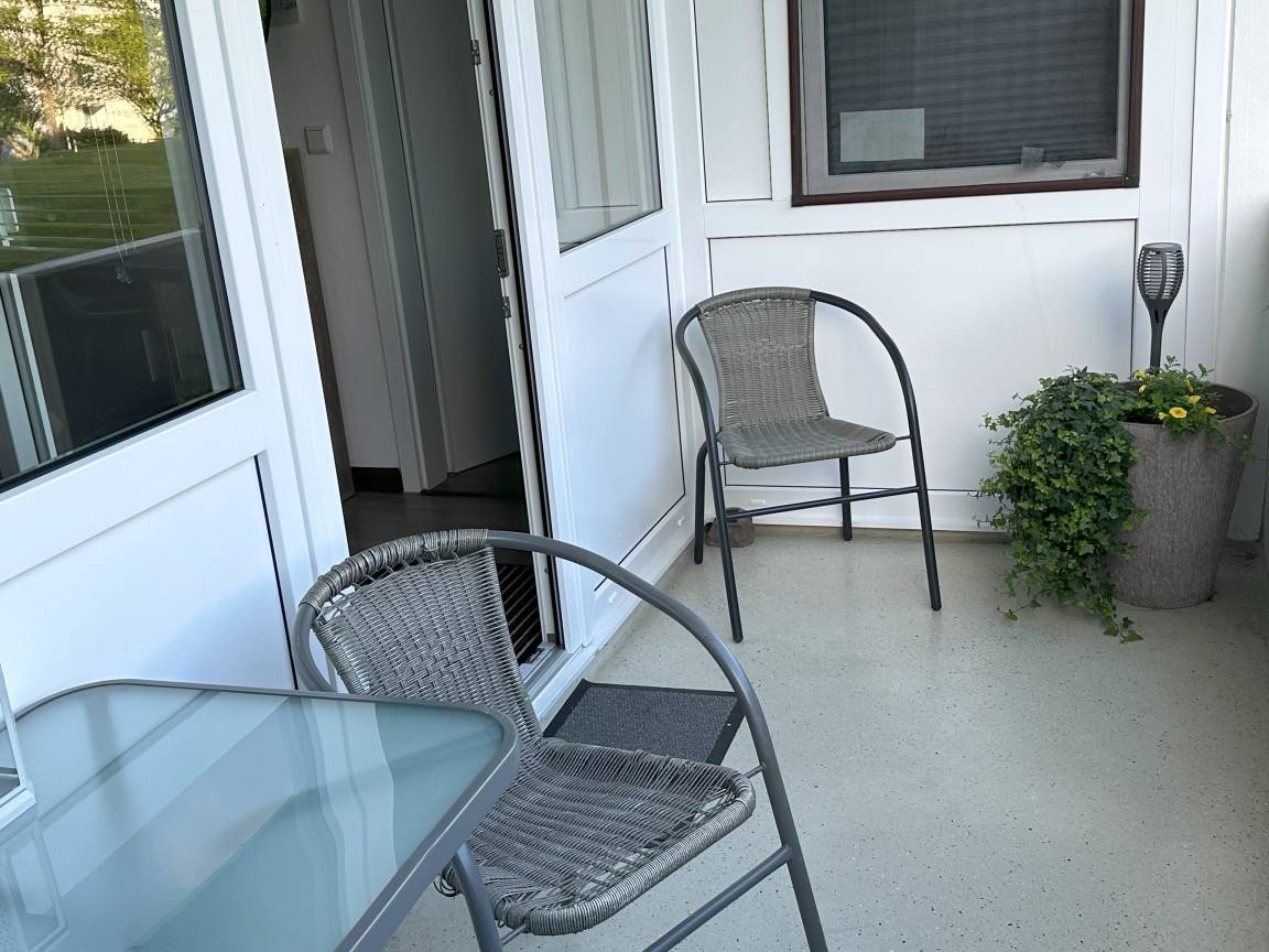 überdachter Balkon mit Tisch,Bank,2 Stühle