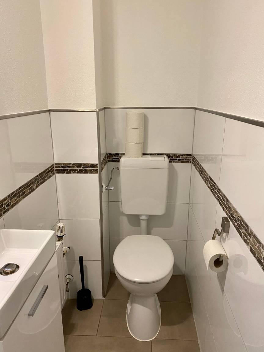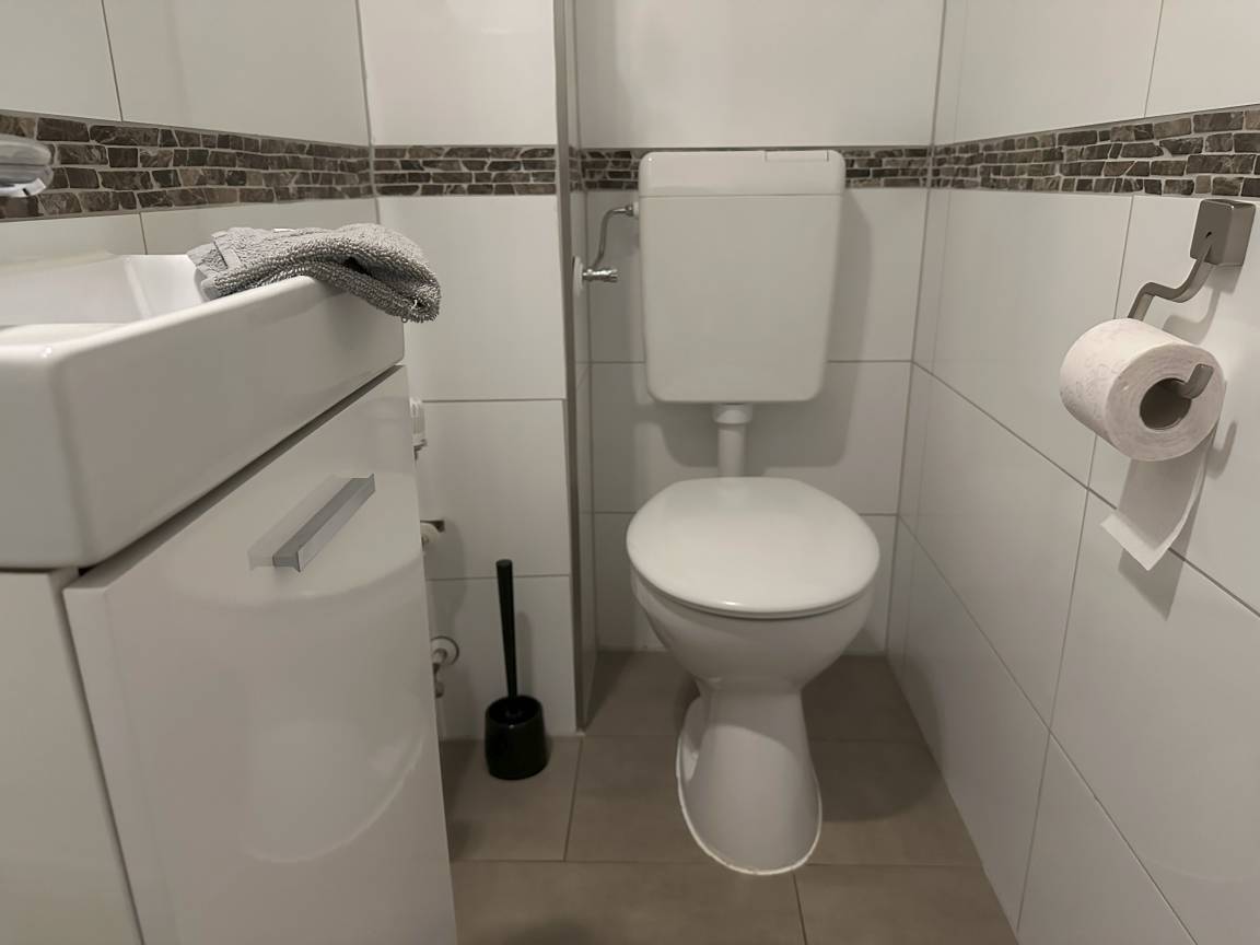 2. Sanitärraum mit Toilette und Handwaschbecken