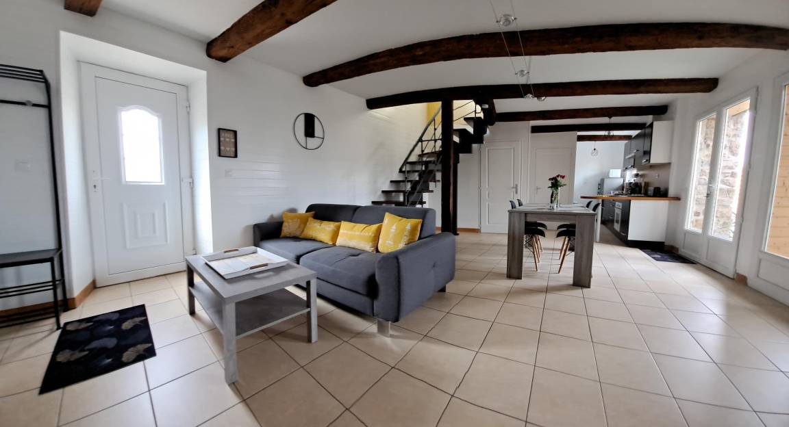 „Accueil très agréable par la propriétaire, avec petits cadeaux de bienvenue et fleurs fraîches. Gite d'une propreté remarquable, bien équipé, literie king size au TOP (mais pas de volets dans la seconde chambre).Le seul petit bémol est la poutre au dessus de l'escalier, qui nécessite de faire attention pour ne pas se cogner la tête en montant ou descendant. Les propriétaires sont très discrets, on n'a même pas entendu une seule fois leur 2 chiens, malgré la proximité immédiate de leur maison. Le seul point négatif est qu'il n'avait pas de Wifi (ado scotché au téléphone: Oubliez !)“