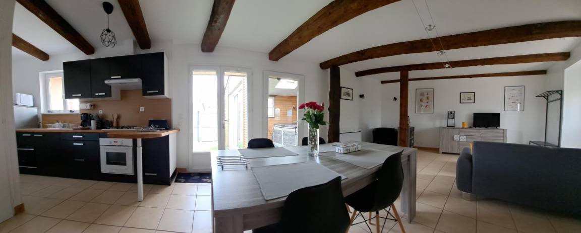 „LOCATION PARFAITE, excellent acceuil, gite comprenant tout ce qu'il faut pour passer une agréable semaine, litterie parfaitele petit plus trop agréable, le Jaccuzi qui donne du boom au coeur même si le temps est mausade.“