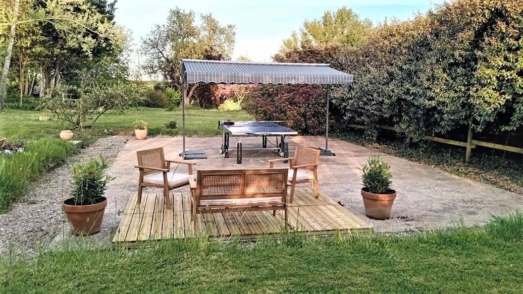 Überdachte Terrasse, auf der Sie an sonnigen Tagen entspannen oder essen können. Entspannen Sie sich im angrenzenden und privaten Garten (2500m²). Gas-Plancha. Und für die Kleinen nutzen Sie die Schaukel im privaten Garten der