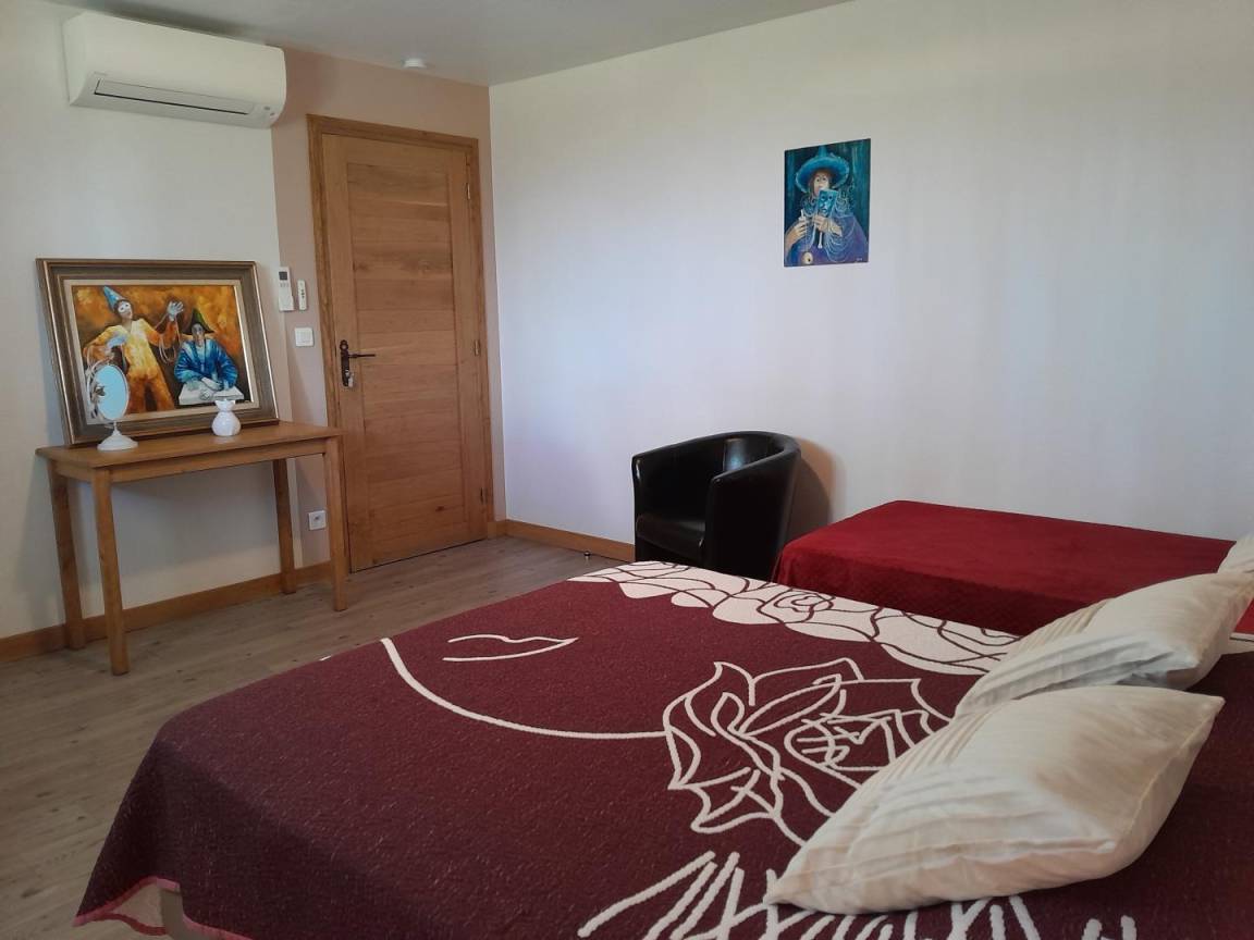 „Nous avons passé une semaine caniculaire. 40 °. Quel bonheur d'avoir choisi un gîte avec la climatisation dans toutes les pièces. Gîte récent, grand garage, table de ping-pong, billard, rien ne manque. Le soir, visite d'un chevreuil venu s'abreuver dans l'étang proche, le gîte est très proche de la forêt, loin de la foule. A quelques km, une halle gourmande achalandée en conserves, fruits, légumes et viande; tout est de la région. Pour les amateurs de miel, la propriétaire est apicultrice aussi. Pour les éventuels pêcheurs, pas de poisson dans les 2 pièces d'eau.“