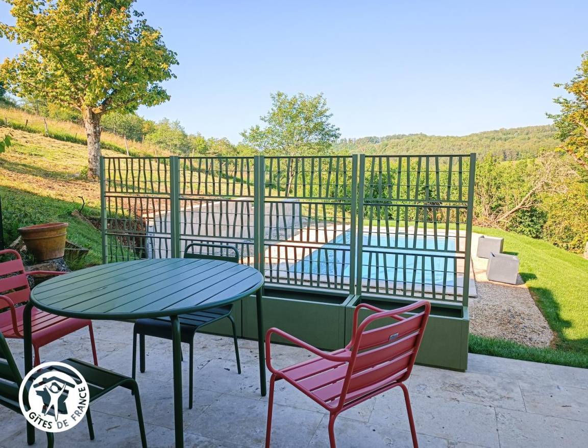 „Gîte vraiment très bien équipé avec une belle petite terrasse et magnifique piscine partagée. La vue de la terrasse est belle. Accueil très agréable par les propriétaires qui sont très disponibles si besoin et petits cadeaux d'accueil (noix caramélisées, huile et vinaigre de noix, confiture et jus d'orange) Le gîte a aussi du sel, poivre et qqes épices ce qui est bien agréable pour cuisiner. La région est magnifique quelque soit le temps!“