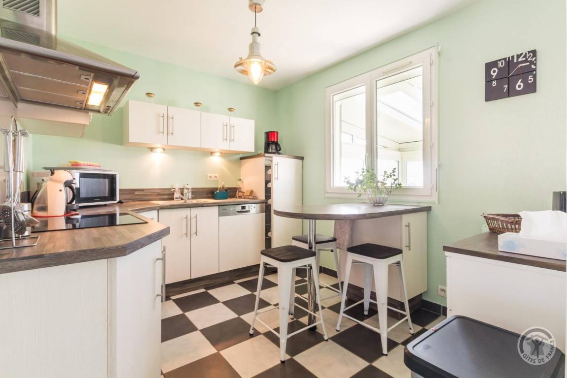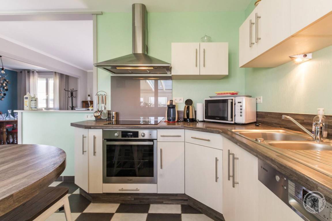 Freistehendes Haus. Wohnzimmer (TV, Glasfaser-Internet, Elektrokamin, Gesellschaftsspiele). Küche (Induktionskochfeld, Elektroherd, Dunstabzugshaube, Mikrowelle, Dolce Gusto Espressomaschine, Geschirrspüler, Gefrierfach). Südwestlich ausgerichtete Veranda. Schlafzimmer 1 (Doppelbett 140x190 cm). Schlafzimmer 2 (zwei Einzelbetten 90x190 cm). Duschbad (Waschbecken, ebenerdige Dusche, beheizter Handtuchhalter). Separates WC. Keller (Waschmaschine, Spülbecken, ideal zum Abwaschen nach Strand- oder Angelausflügen, Gasherd, Gefrierschrank). Außenbereich: Auffahrt mit zwei Stellplätzen (kein Zugang zum Keller). Eingezäuntes Grundstück. Privater Garten. Terrassen zur Straße und zum Garten. Kleiner Fischteich. Kostenlose öffentliche Parkplätze 20 m entfernt. Ölzentralheizung inklusive. Alle Nebenkosten inklusive. Bettwäsche, Handtücher und Küchenwäsche werden gestellt. Betten sind bei Ankunft bezogen. Endreinigung inklusive. Babyausstattung (Reisebett, Hochstuhl) auf Anfrage erhältlich. Bitte b
