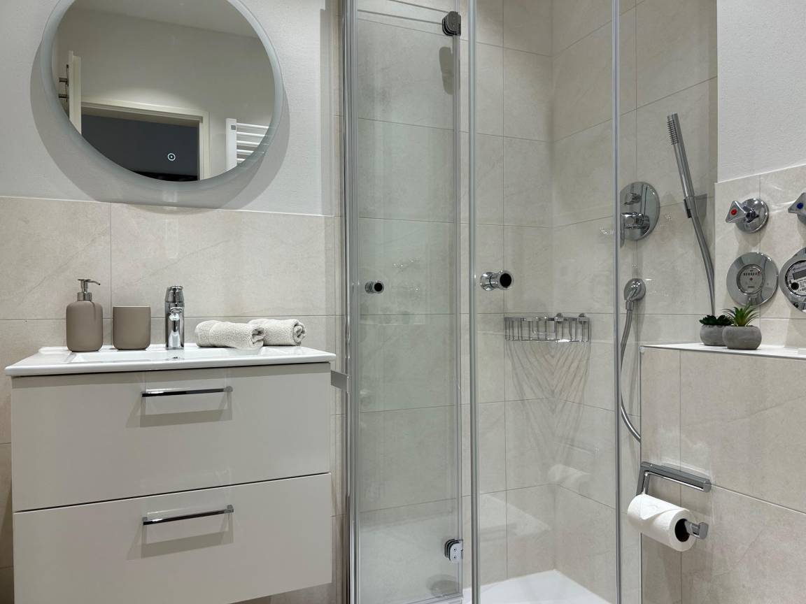 „Die Wohnung war gut eingerichtet, das Schlafzimmer war etwas klein. Ein Tipp. Für die Dusche wäre ein Abzieher schön, man könnte die Duschkabine damit etwas vor Kalkflecken bewahren.“