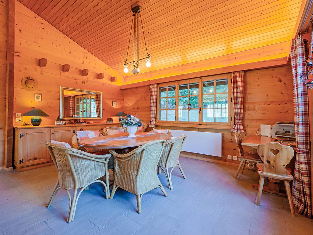 Haus: Schönes Komfort-Chalet mit Sauna und Kamin. 5 Zimmer-Chalet mit 170 qm Wohnfläche über 2 Etagen. 4 Schlafräume, 3 Bäder! Typische Chalet Atmosphäre mit schöner Holzvertäfelung, moderne Komfort-Ausstattung. Internet kostenlos über W-Lan. Waschmaschine, Trockner. Zentralheizung. Nichtraucherhaus. Balkon, Terrasse. Lademöglichkeit für E-Autos nach Vereinbarung. 3 Pkw Stellplätze am Haus, 2 weitere Stellplätze 150 m.