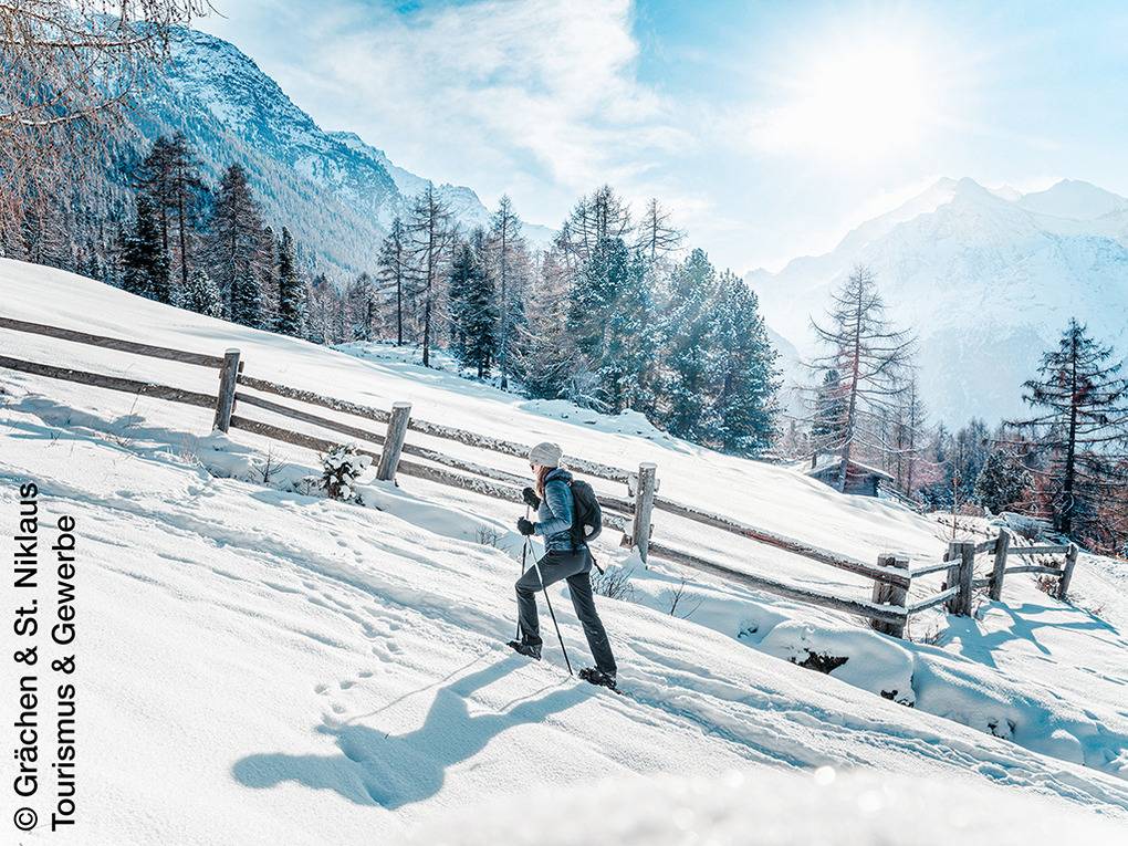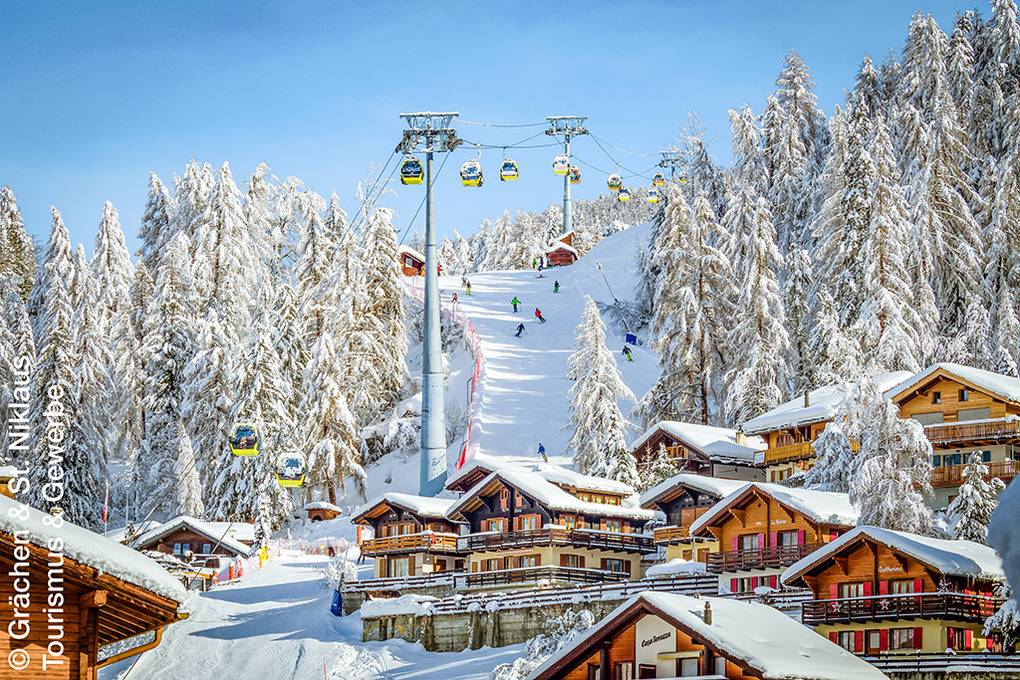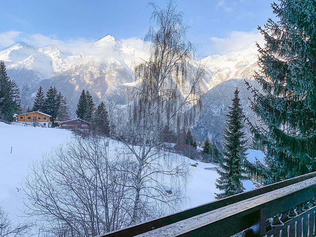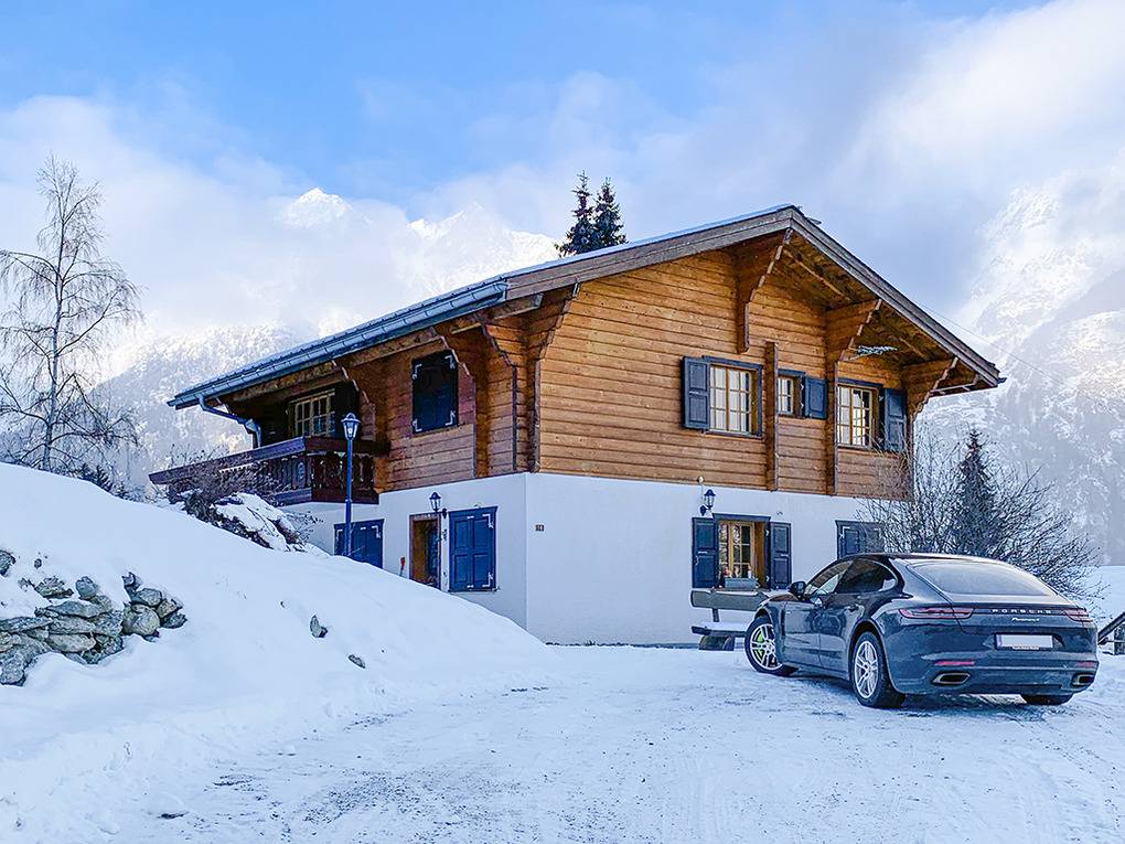 Ort: Niedergrächen. Ruhige Lage auf 1.500 m Höhe in einer Chaletsiedlung unterhalb des autofreien Orts Grächen. Schöner Panoramablick auf das Weisshorn (4.505 m) und die imposante Bergwelt des Mattertals. Ortsmitte Grächen mit Gondel ins Skigebiet, Supermarkt, Restaurants 2,5 km. Skibus 250 m. Zermatt mit Matterhorn nur 25 km. Saas Fee 30 km. Pkw-Zufahrt bis zum Haus (die letzten 150 m steil, Winterausrüstung erforderlich).