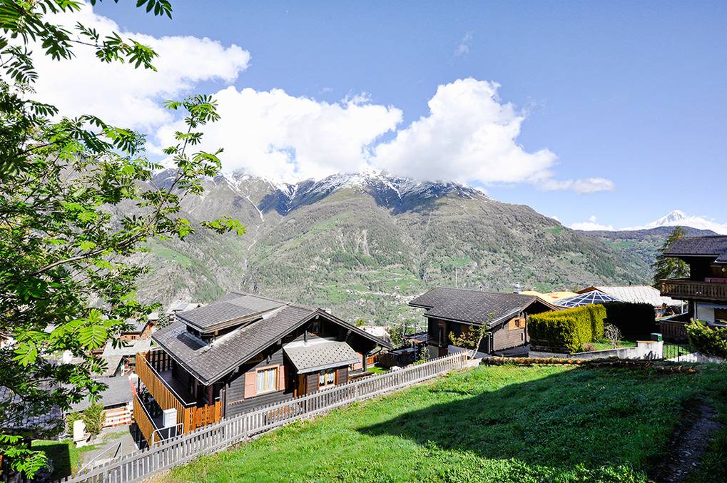 Ort: Grächen. Ruhige Lage auf 1.700 m Höhe oberhalb des autofreien Ortes. Schöner Panoramablick über das hübsche Bergdorf und auf die imposante Bergwelt des Mattertals. Ortsmitte mit Supermarkt, Restaurants, Gondel (Sommerbetrieb) nur 450 m! Der Europaweg Grächen-Zermatt beginnt in der Nähe des Hauses. Vielfältige Wander- und Mountainbikewege rund um Grächen und die Hannigalp.