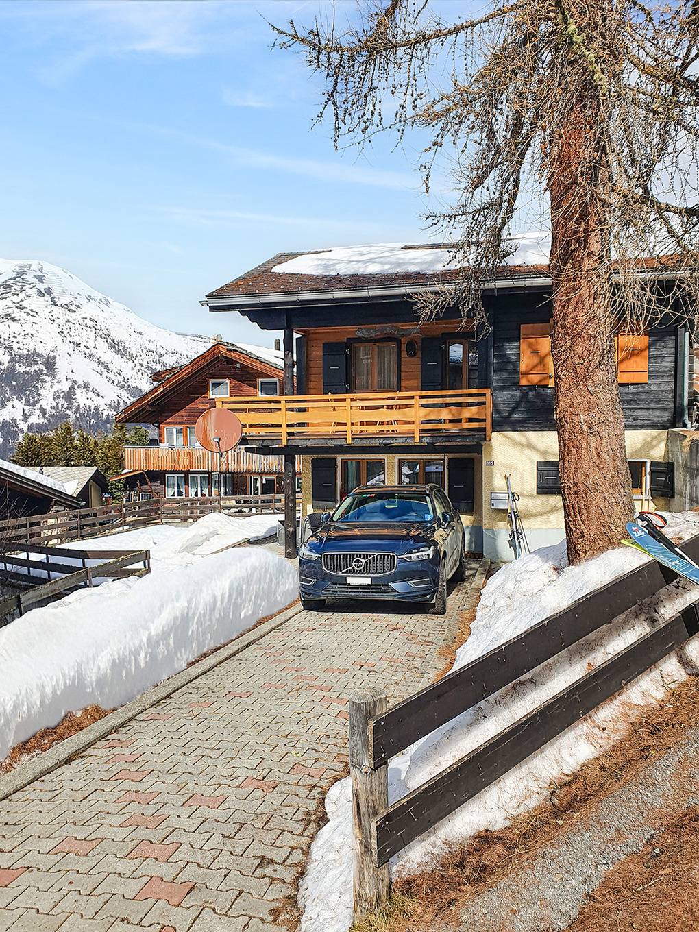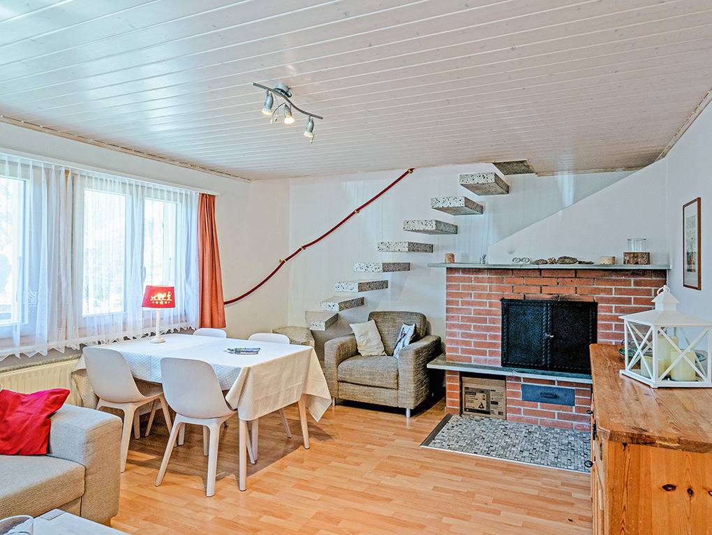 Haus: Schönes Chalet mit Kamin. 4 1/2-Zimmerhaus mit 90 qm Wohnfläche über 2 Etagen. Gemütliche Chalet Atmosphäre, gepflegte Einrichtung. Internet kostenlos über W-Lan. Waschmaschine. Zentralheizung. Nichtraucherhaus. Großer überdachter Balkon mit Sitzmöbeln. Terrasse mit Sitzmöbeln. Zwei Pkw-Stellplätze am Haus (Winterausrüstung erforderlich, sehr schmale Zufahrt, für große Pkw nicht geeignet).
