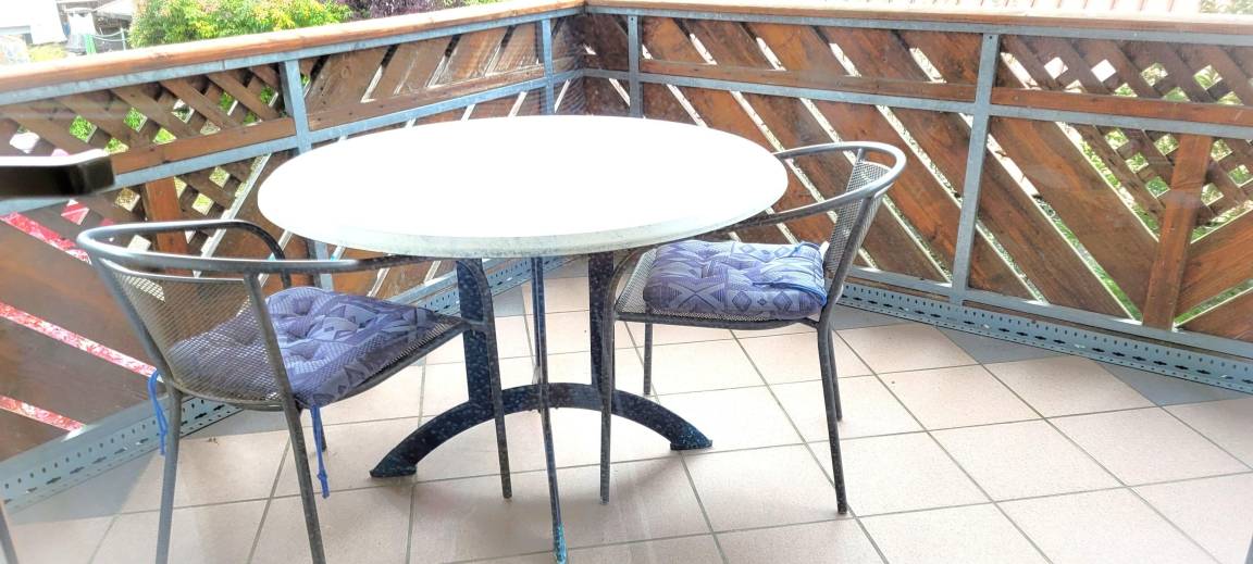 -die Wohnung hat einen Balkon mit Tisch u. 2 Stühlen