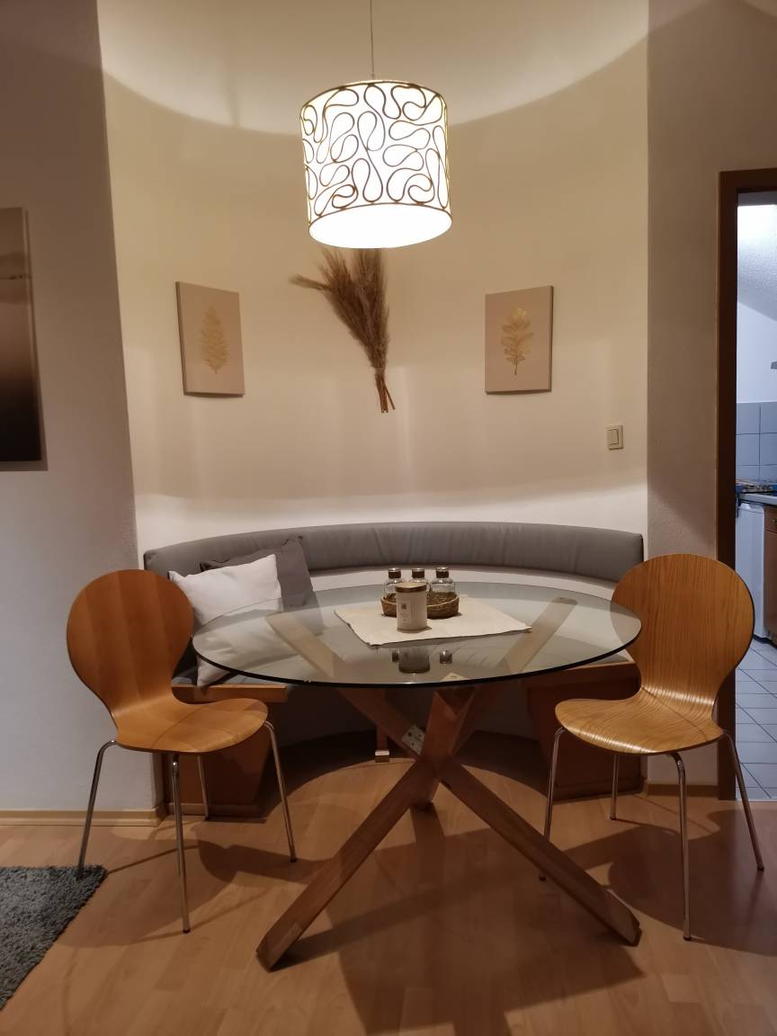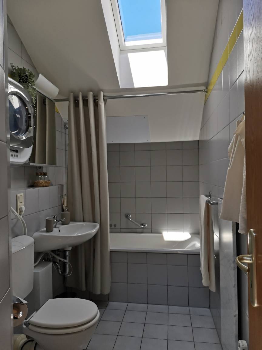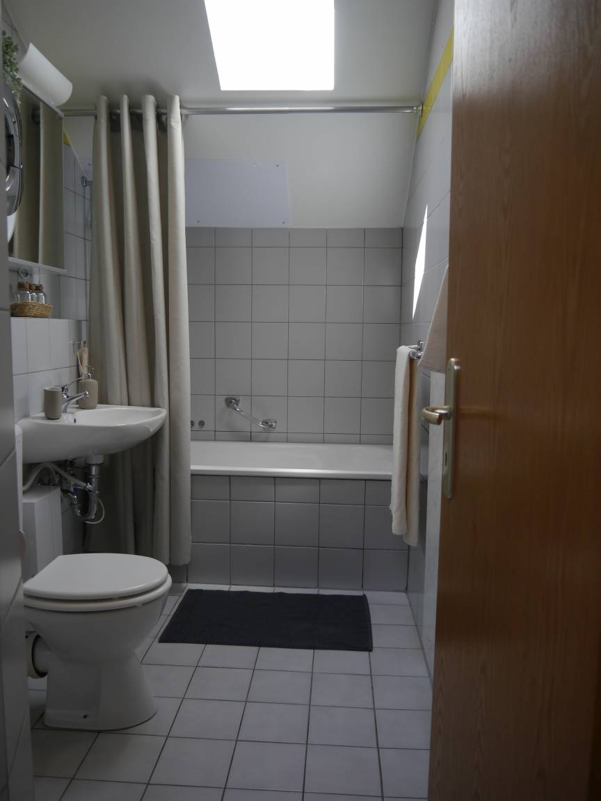In der Wohnung steht alles für einen angenehmen Aufenthalt bereit. Das gemütliche Schlafzimmer umfasst ein Doppelbett (2m*1,6m) und einen Kleiderschrank. Für zwei weitere Personen haben wir ein gemütliches Schlafsofa im Wohnzimmer, unter dem Sofa befinden sich die zusätzlichen Bettsachen. Neben dem Sofa gibt es im Wohnzimmer einen gemütlichen Esstisch für vier Personen, einen Flachbildfernseher mit Satelliten TV und Streaming Möglichkeit, ein Radio(mit Bluetooth), Gesellschaftsspiele und Malsachen für Kinder. Wenn Sie die Tür zum Balkon öffnen, gelangen Sie auf den wunderschönen Balkon mit einem Tisch und Stühlen für bis zu vier Personen und einem Elektrogrill. Rauchen ist nur auf dem Balkon erlaubt, in der Wohnung ist rauchen nicht erlaubt. Die Küche ist ausgestattet mit Kühlschrank, Geschirrspüler, Mikrowelle, Wasserkocher, Kaffeemaschine, Toaster und einem kompletten Geschirrsatz. Im Badezimmer finden Sie eine Badewanne mit Dusche, ein Waschbecken, einen Haartrockner und eine Mini-Waschmaschine. Vor der Wohnung ist ein Fahrradständer zu finden, an welchem Sie ihr Fahrrad abstellen können.