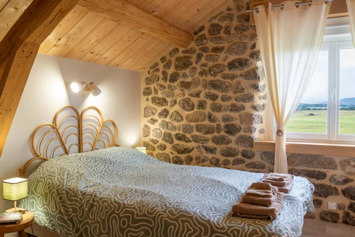 „Très bon accueil des propriétaires attentifs et bienveillants. Le gîte est confortable, agréable, propre et moderne. La vue est magnifique et le lieu est vraiment ressourçant et calme. Belle vue sur la campagne lozérienne, environnement apaisant. De belles randonnées. Marché à Grandrieu le dimanche et Langogne le samedi. Merci à Sonia et Jérôme.“