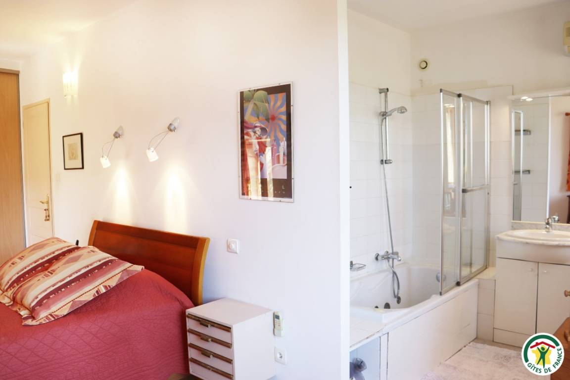 Unser Haus ist geräumig und verfügt über 210 m², die unseren Gästen vorbehalten sind. Im Erdgeschoss befinden sich die Wohnräume (großes Wohnzimmer, Küche, Loungebereich mit Kamin und Essbereich) sowie 2 Terrassen + das 45 m² große Studio, das als 2. Wohnzimmer mit Küchenzeile und Duschraum dient. Im 1. Stock 2 große Schlafzimmer (1 x 140) (1 x 140, 2 x 90 Etagenbetten), 1 Technikraum und 1 separate Toilette. Im 2. Stock (1 x 160) (2 x 80, kombinierbar zu einem 160). Darüber hinaus ein 25 m² großes, klimatisiertes Büro, ideal für Telearbeit, falls erforderlich. Alle Schlafzimmer verfügen über Klimaanlage oder Kühlsäulen und bieten einen Panoramablick auf das Drôme-Tal, das alte Dorf, die 3 Schnäbel und die hochgelegene Synklinale von Saoû. Unser Haus liegt ruhig oberhalb des Dorfes, nur wenige Gehminuten von Geschäften und Annehmlichkeiten (Supermarkt, Café-Tabak, Pizzeria, Sternerestaurant, Bäckerei, Kurzwarengeschäft, Apotheke, Ärzte, Krankenschwestern,