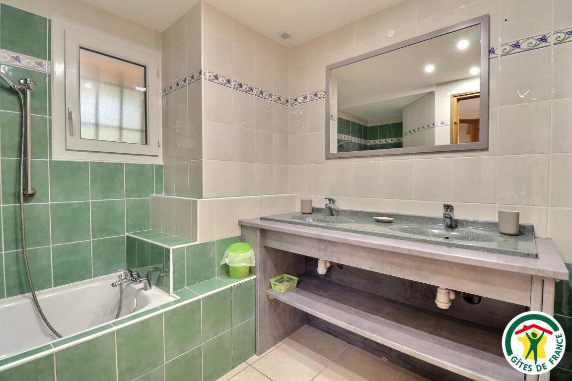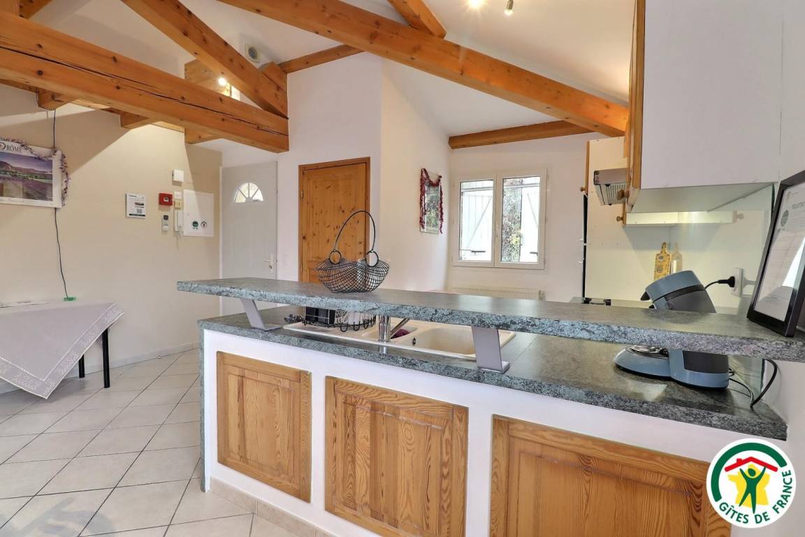 „Literie confortable, cuisine super équipée, emplacement proche des commerces (à peine 5 minutes en voiture), gîte très propre. Nous avons loué le gîte pendant la canicule, heureusement il y avait la piscine et la clim, donc parfait. Le seul petit point négatif pourrait être le manque d'une douche (mais la salle de bain est très bien).“
