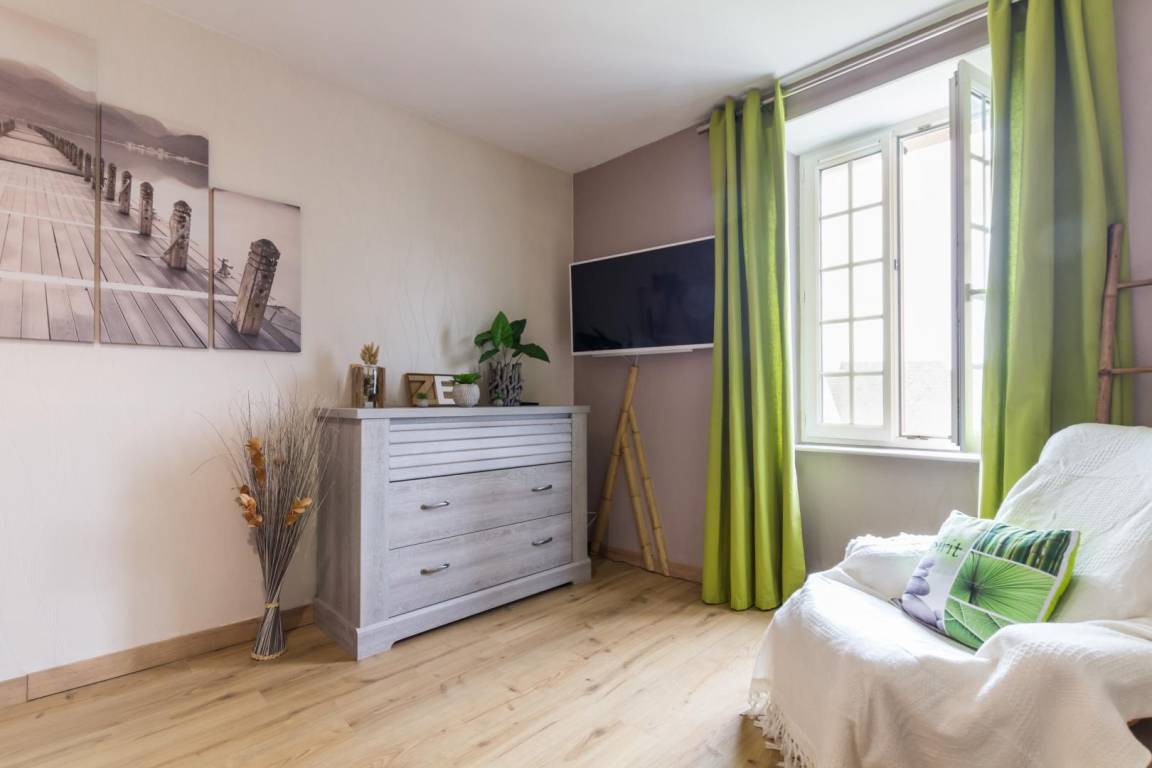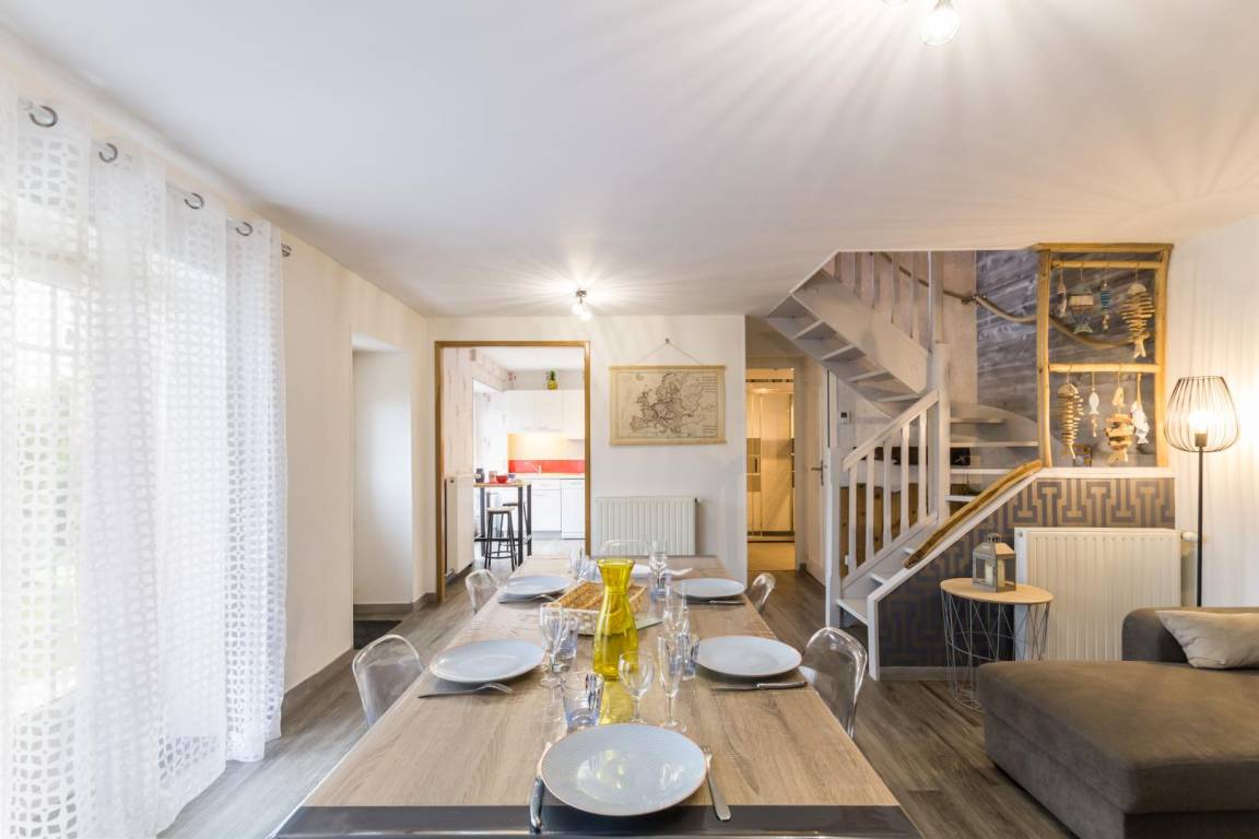 „The house was very nice, decorated with a lot of love and comfort. The bathroom was very comfortabele and the lange garden private. WC on first floor. Presents to welcome us. The boulangerie and Leclerc in walking distance. We could put our bycicles in the garage. We had a very fine stay in this gite“