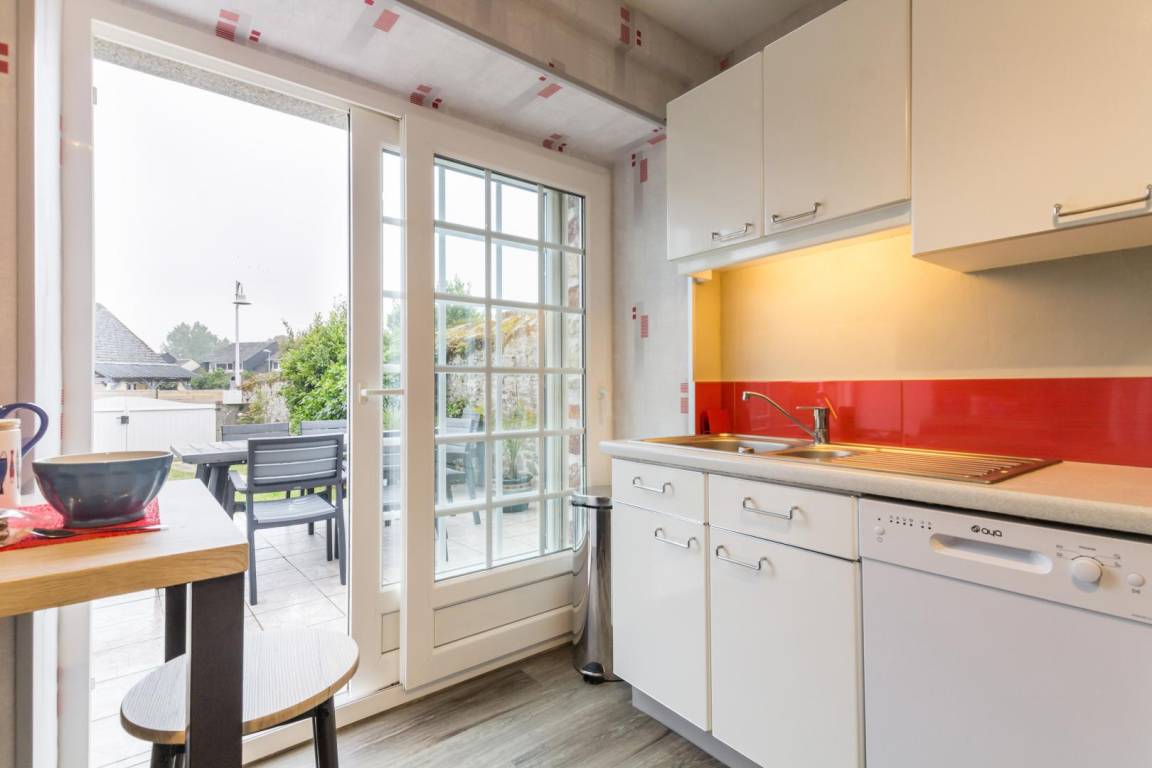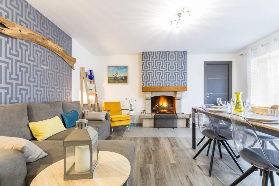 Freistehendes Haus. Wohnzimmer mit Kamin (TV, Internet). Küche (Backofen, Geschirrspüler, Mikrowelle). Duschbad. WC. Hauswirtschaftsraum (Waschmaschine). Im ersten Stock: Schlafzimmer 1 (zwei Einzelbetten 90x200 cm), Schlafzimmer 2 (ein Einzelbett 90x190 cm + ein Ausziehbett 90x190 cm), Schlafzimmer 3 (ein Doppelbett 160x200 cm) und WC + TV. Babyausstattung. Bettwäsche wird gestellt und die Betten sind bei Ankunft bezogen. Handtücher können gemietet werden. Gaszentralheizung. Alle Nebenkosten inklusive. Reinigungsservice gegen Aufpreis. Privater, umzäunter Garten. Terrasse. Gartenmöbel. Grill. Sonnenliegen. Parkplatz. Garage für Wassersportausrüstung oder andere Gegenstände.