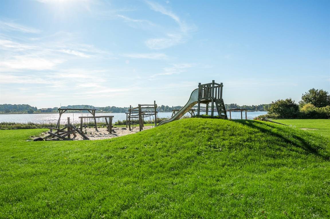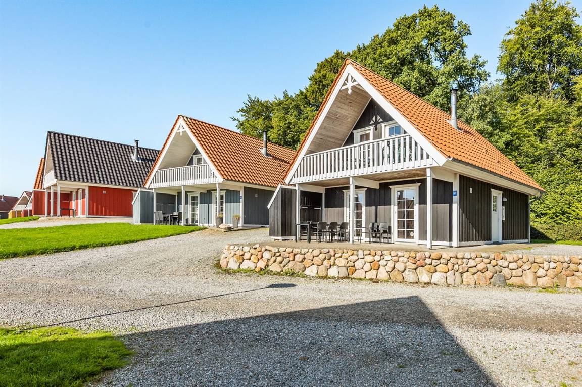Dieses herrliche Ferienhaus aus Holz in 2 Etagen gebaut liegt in der Ferienanlage Marina Fiskenæs direkt an der Flensburger Förde. Die Ferienanlage liegt in naturschöner Umgebung, in unmittelbarer Nähe von Wald und Strand sowie im Gehabstand vom gemütlichen Ort Gråsten. Hier finden Sie u. a. das schöne weiße Gråsten Schloss, wo Sie den Wachwechsel der Leibgarde erleben können. Ab und zu wohnt die dänische Königin im Schloss. Zum Haus gehört eine große, offene Terrasse mit Gartenmöbeln und ein Balkon. Im Erdgeschoss gibt es ein schönes Badezimmer mit Duschnische, 2-Pers.-Whirlpool und Sauna. Hübsche Küche, die mit dem Esszimmer kombiniert ist und u. a. Geschirrspüler, Mikrowelle, Tiefkühlgerät, Umluftofen und Herd mit Ceran-Feld enthält. 2 Schlafzimmer mit Doppelbett. Sowohl von der Küche als auch von einem der Schlafzimmer gibt es Zutritt zur überdachten Terrasse. Mitten im Haus führt eine Treppe ins Obergeschoss - hier finden Sie das gut eingerichtete Wohnzimmer mit Ausgang zum Balkon. Das Wohnzimmer enthält Kaminofen, TV mit Gemeinschaftsantenne, DVD-Spieler und Radio. Im Obergeschoss finden Sie ferner Gästetoilette mit Waschmaschine und Wäschetrockner sowie 2 Schlafzimmer mit Doppelbett. Die „Marina Fiskenæs Ferienanlage" bietet viele Aktivitätsmöglichkeiten für die ganze Familie. Als Mieter haben Sie freier Zutritt zum subtropischen Badeland und Fitnesscenter und gegen Zahlung können Sie die Wellness Einrichtungen (u. a. Massage, Fisch Spa, Dampfbad, Kaltwasserwanne, finnische Sauna, erhitztes Außenspa und Warmwasserbassin) genießen. Außerdem gibt es ein Innenspielzimmer und Springkissen für die Kinder. Im Gebiet gibt es einen großen Spielplatz mit u. a. Fußballplatz, Petanque, Schaukeln, Wippe und Rutsche sowie einen großen Rasen. Im Wald hinter der Ferienanlage gibt es markierte Pfade, wo Sie Spaziergänge unternehmen können. Die Flensburger Förde ist für den Angler ideal. In der Marina gibt es einen Außenfischreinigungsplatz und in der Rezeption können Sie ein Boot (kleine Jolle) mieten.