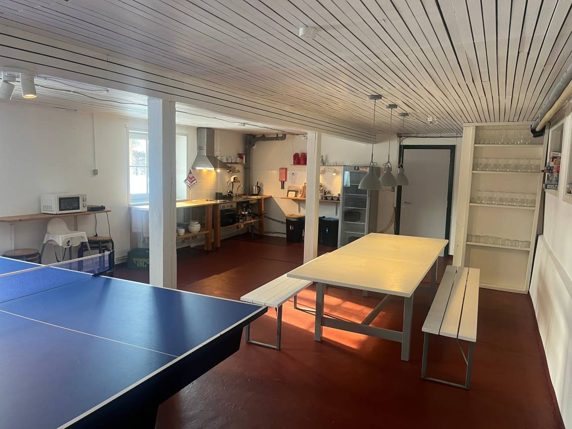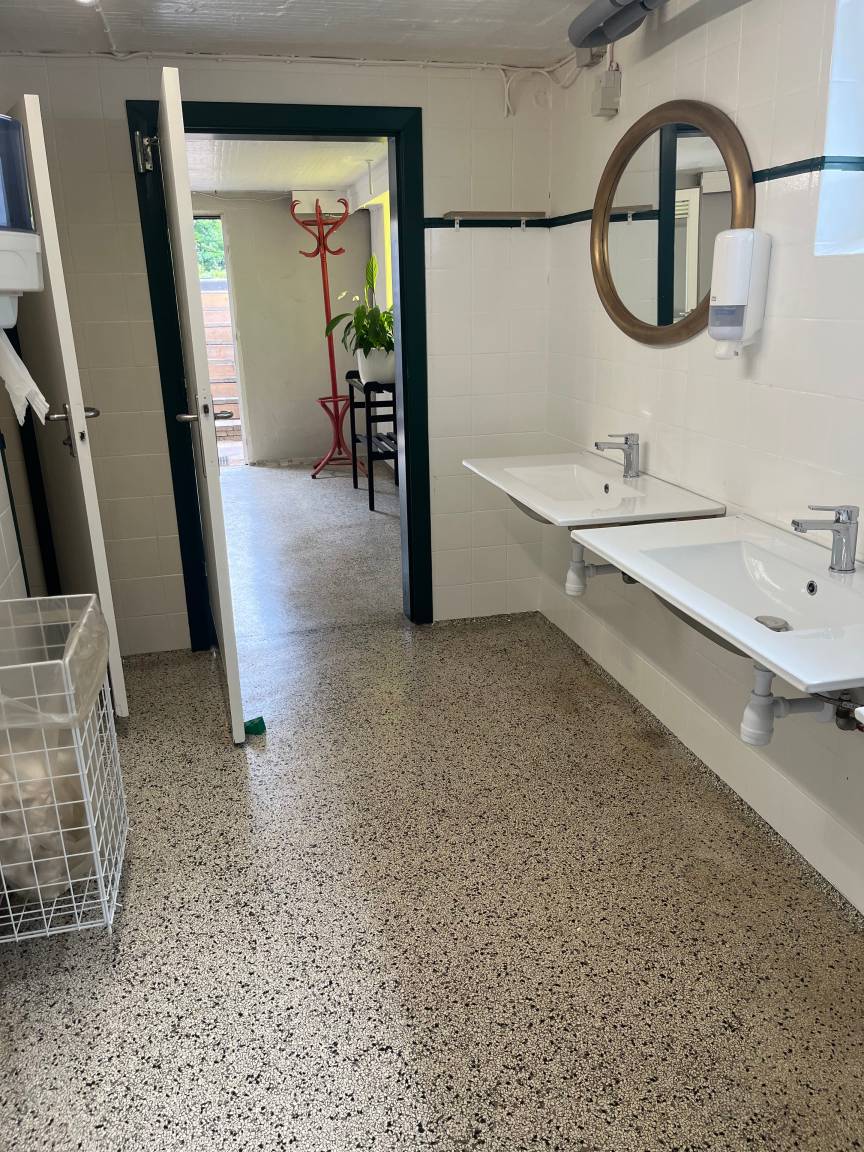 Die Duschen und Toiletten, das Familienbad mit Wickelplatz, sowie die Gemeinschaftsküche mit Billardtisch/Tischtennisplatte befinden sich im Haupthaus (im Souterrain).