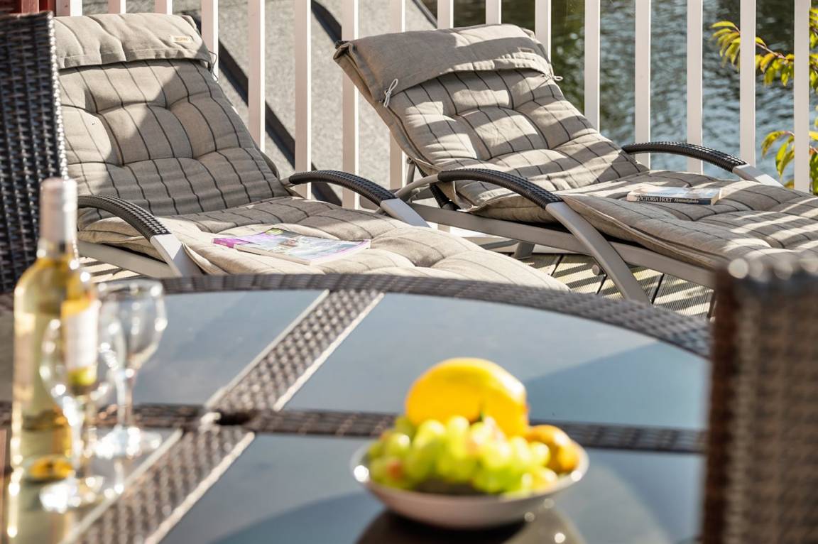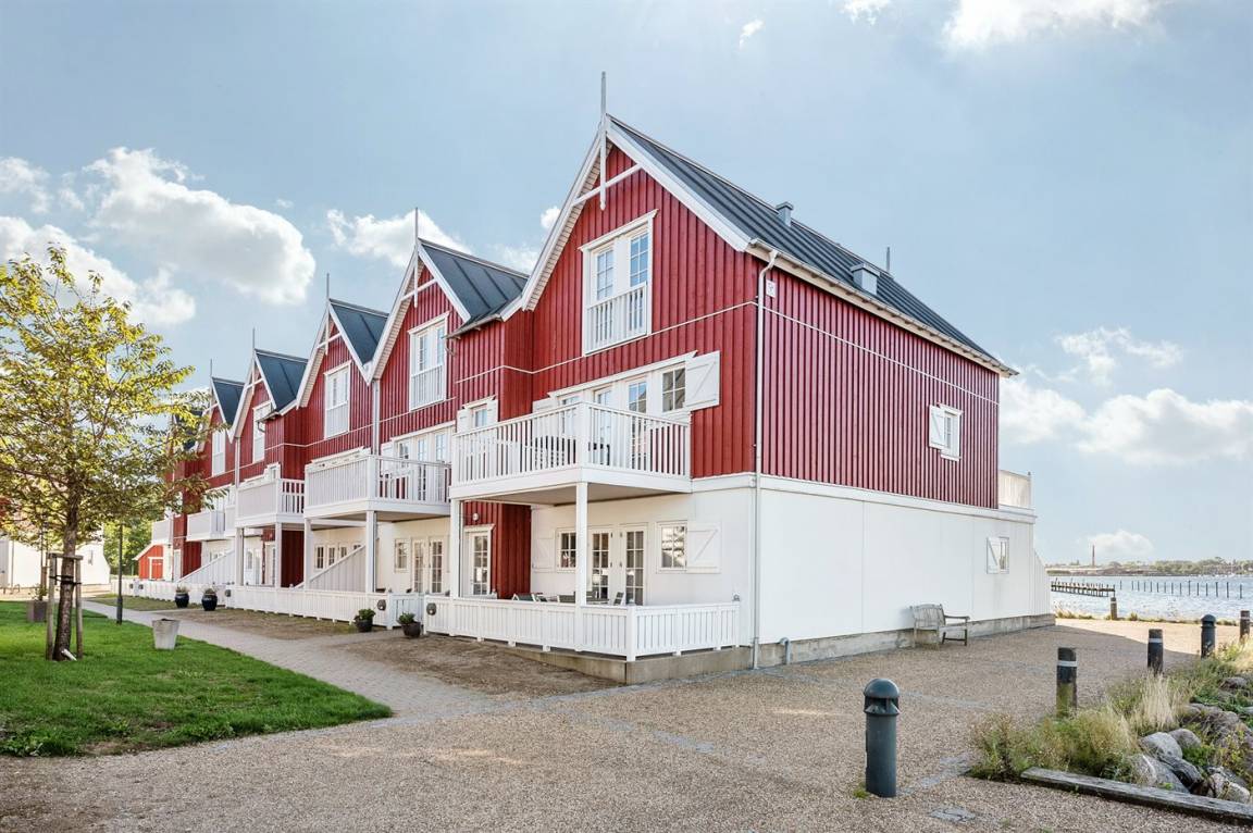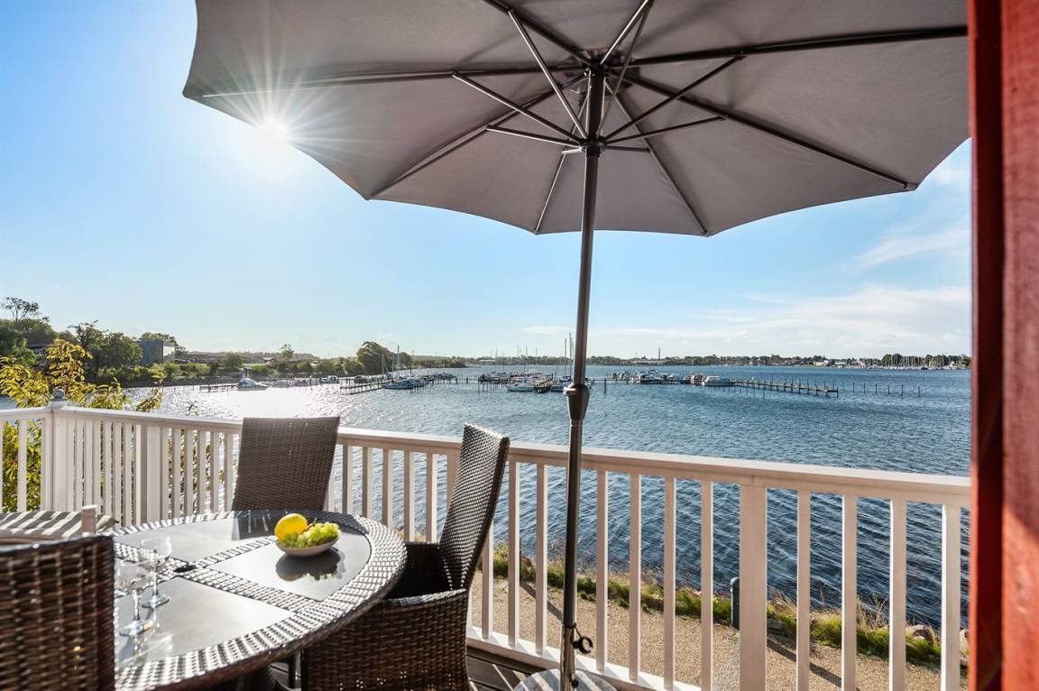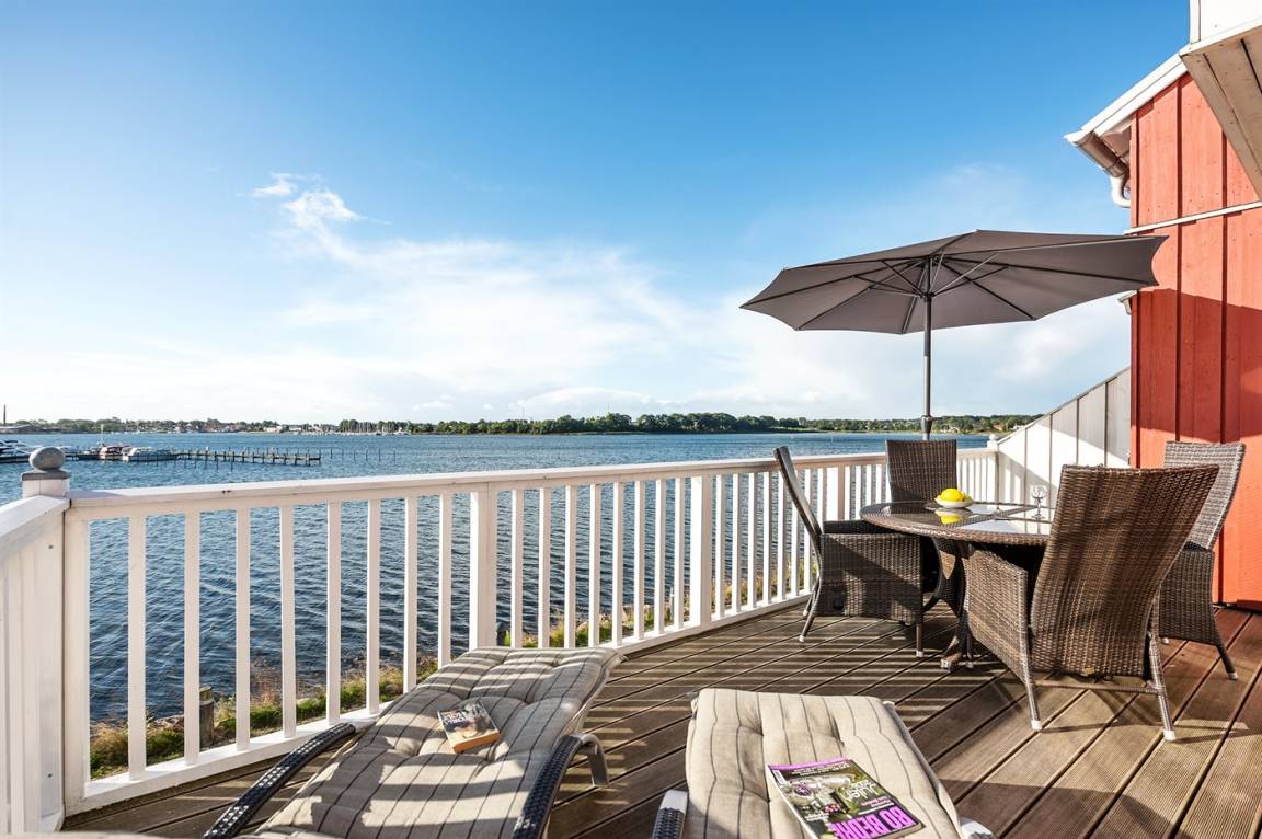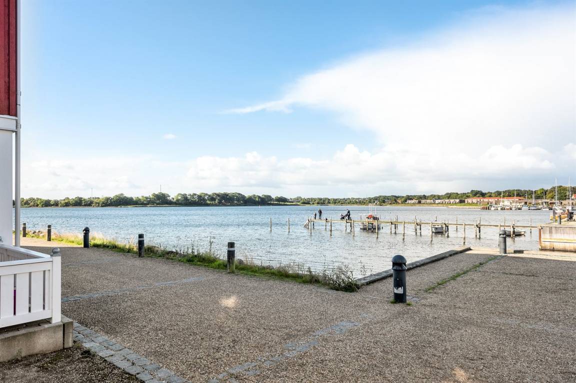 Draußen. Die Entfernung zum Fjord beträgt 5 m. Die Entfernung zu einem See beträgt 30 m. Die nächste Einkaufsmöglichkeit liegt 800 m entfernt. Es steht ein 30 m² Terrassenareal zur Verfügung.Balkon im Obergeschoss. Parkplatz auf dem Grundstück.