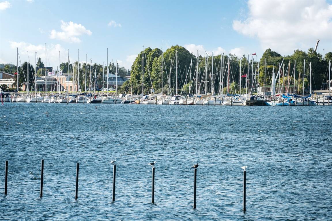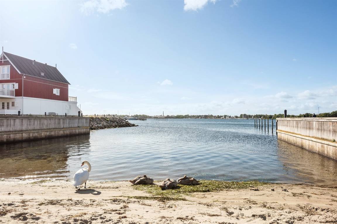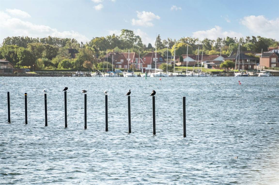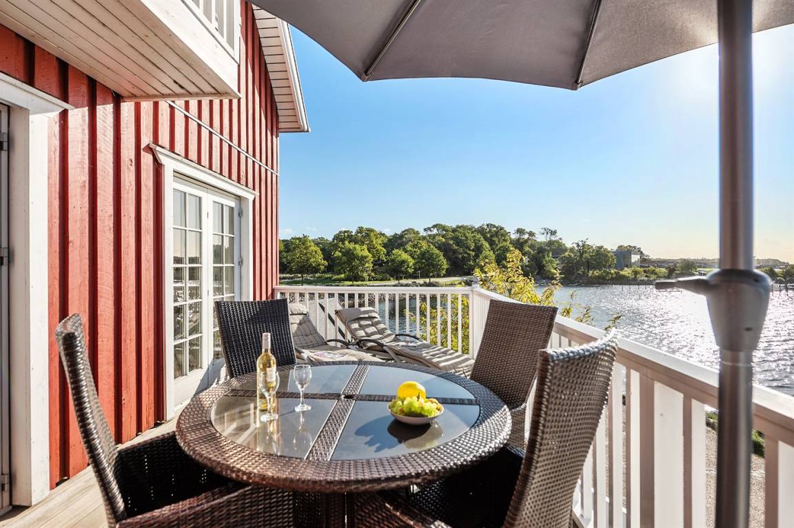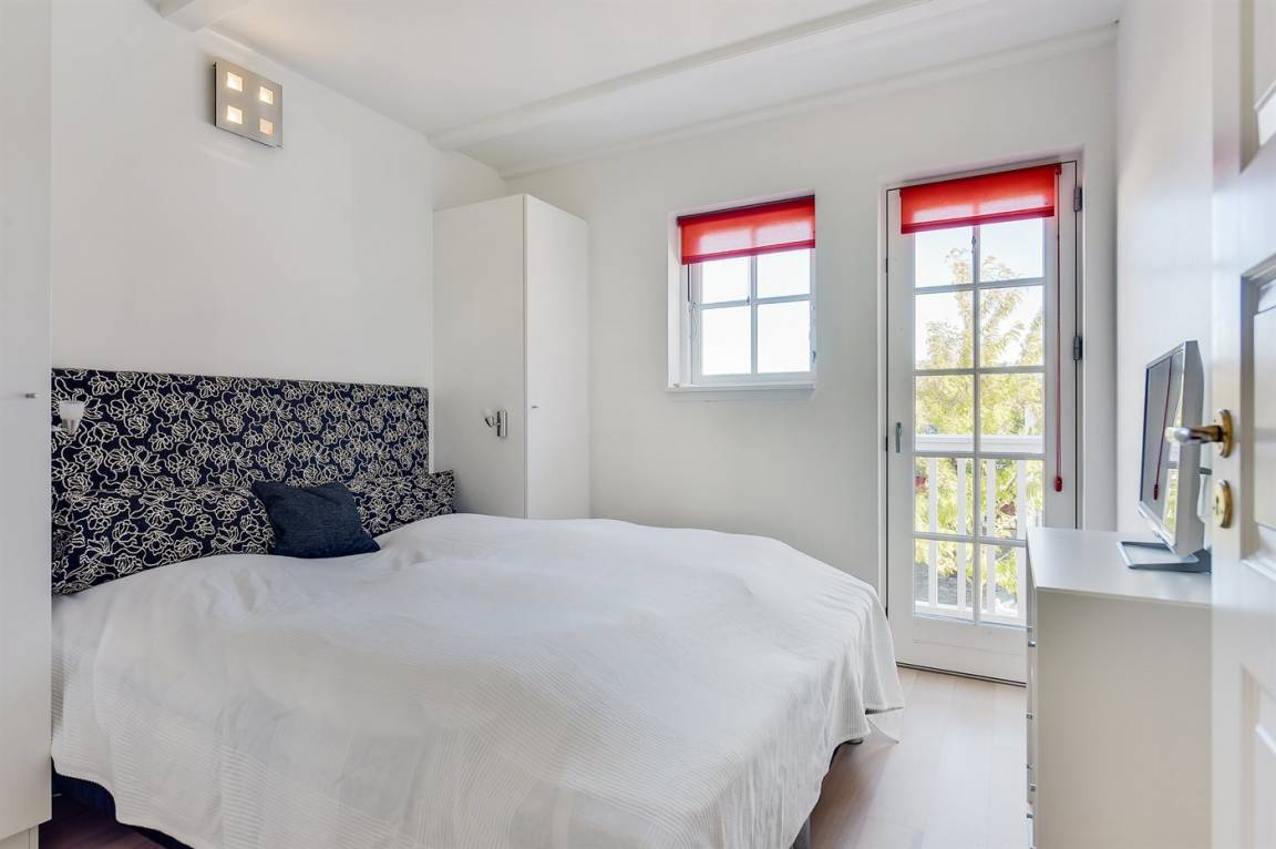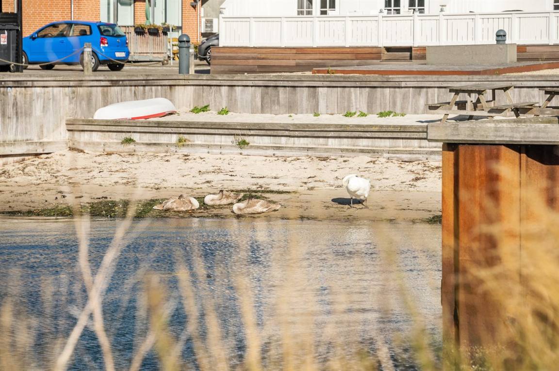 Draußen. Die Entfernung zum Fjord beträgt 5 m. Die Entfernung zu einem See beträgt 30 m. Die nächste Einkaufsmöglichkeit liegt 800 m entfernt. Es steht ein 30 m² Terrassenareal zur Verfügung.Balkon im Obergeschoss. Parkplatz auf dem Grundstück.