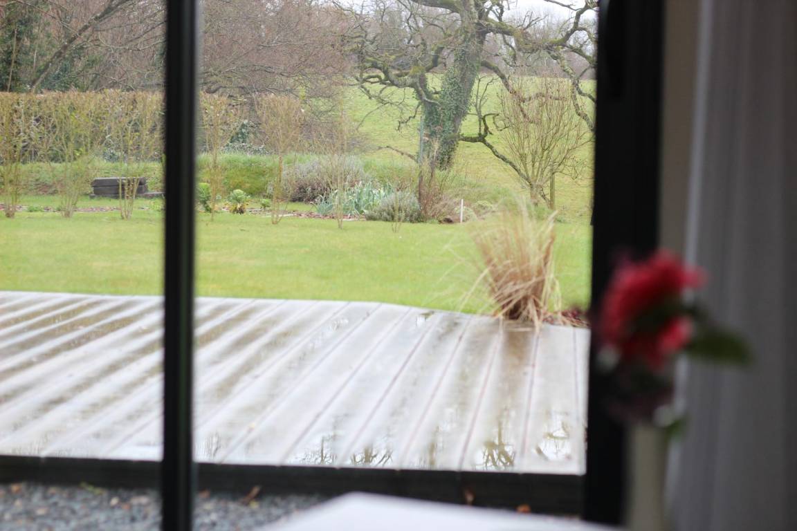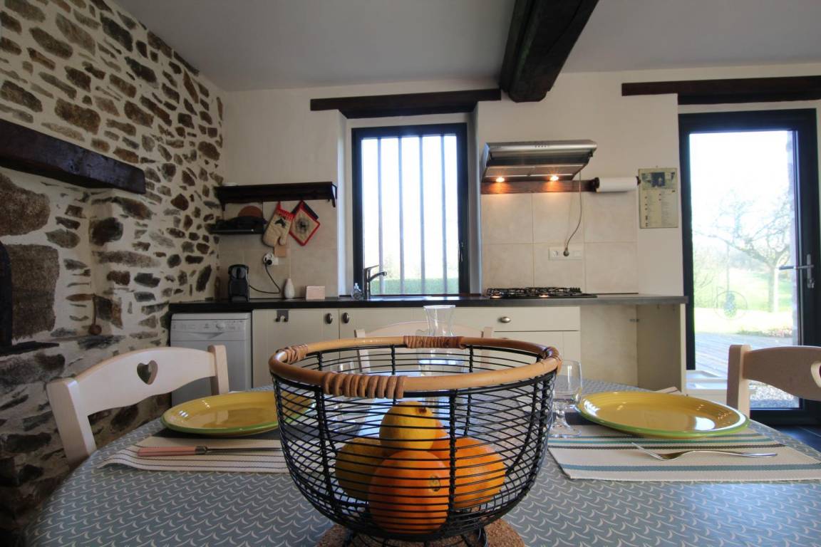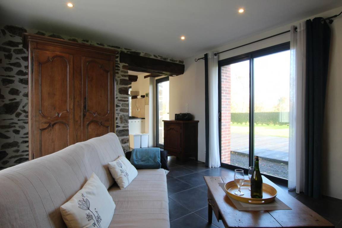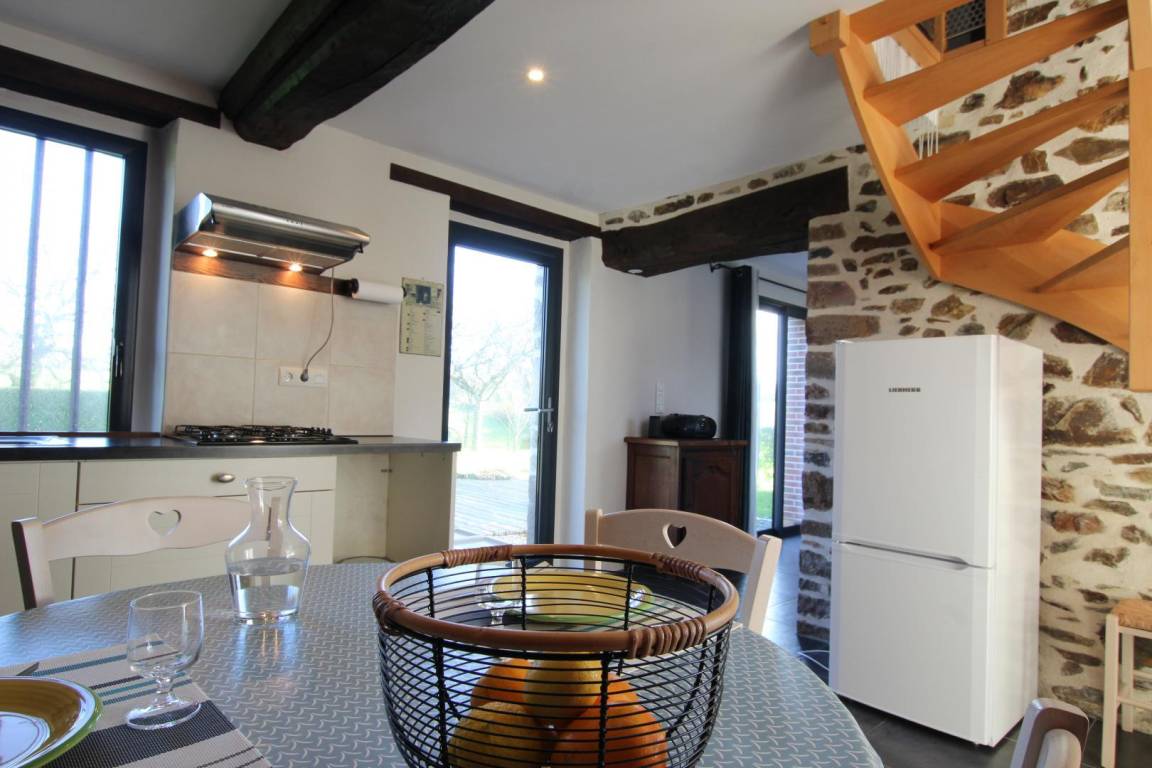 „The gite was well-equipped (dishwasher, washing machine, vacuum cleaner, magnetron...), comfortable for 3 persons and very clean. From the kitchen there is a nice view of the garden, the hills and meadows. The gite is next to the manor of the owner, lies in a dead-end street. From the gite you can do a nice walk to the chateau of Gratot. For your errands you need to go to Coutances (5 km).“