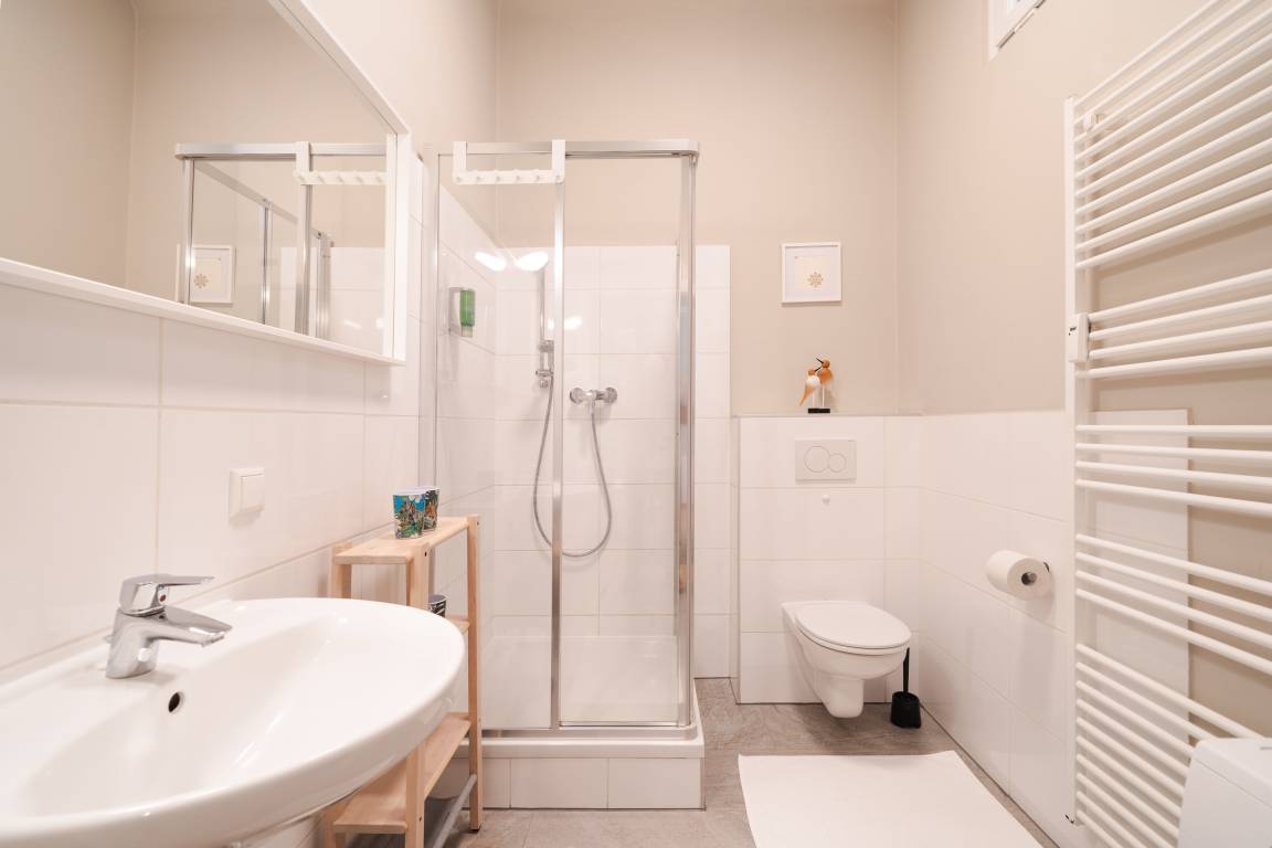 Die vollausgestattete Küche, inklusive Mikrowelle, Geschirrspüler, Kaffeemaschine sowie einem Esstisch und vielen Accessoires sorgen für puren Gaumengenuss, Wohlfühlfaktor und ausreichend Platz für bis zu 4 Personen. Holen Sie sich zum herzhaften Frühstück die frischen Semmeln und Gebäck in der hauseigenen Bäckerei, die nur eine Gehminute entfernt von der Ferienwohnung liegt.