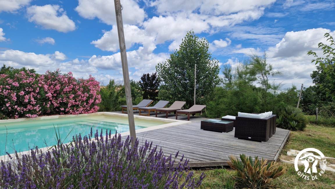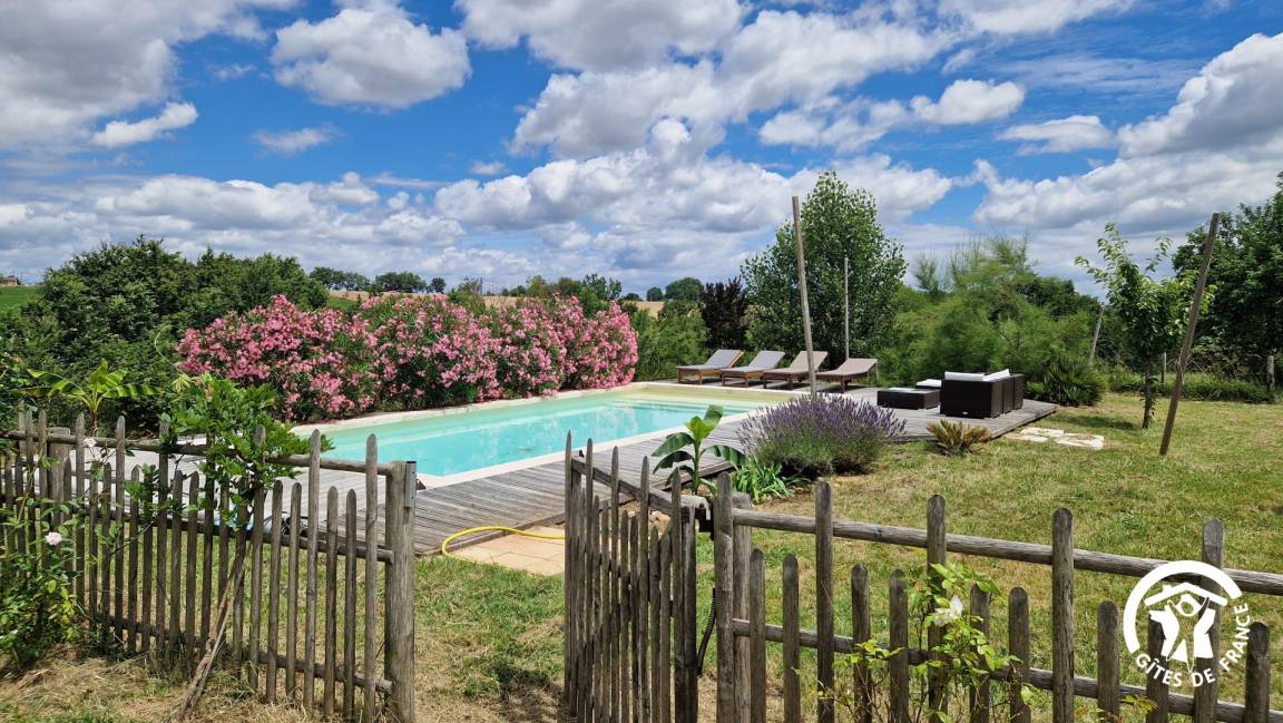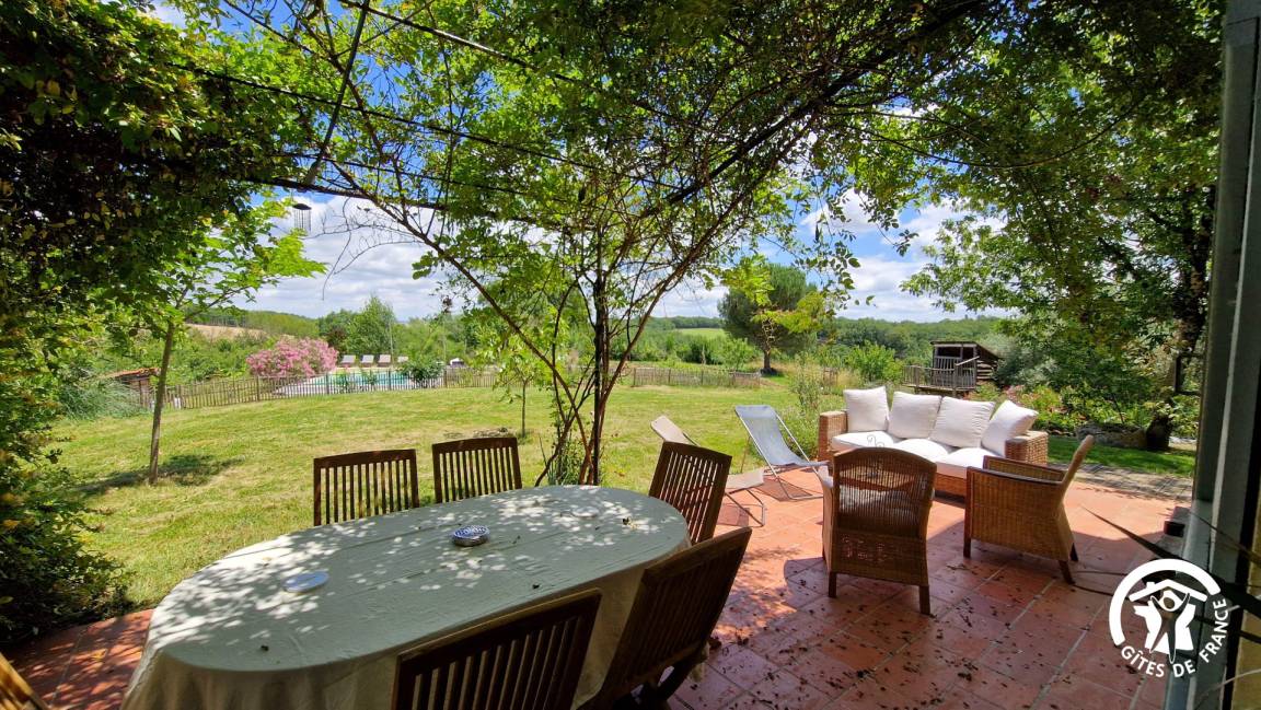 „Nous avons passé une très belle semaine en famille. Le gîte est très grand et permet de se retrouver ensemble ou non. La vue est belle et dégagée et la piscine très agréableNous nous sommes régalés des légumes produits sur place“