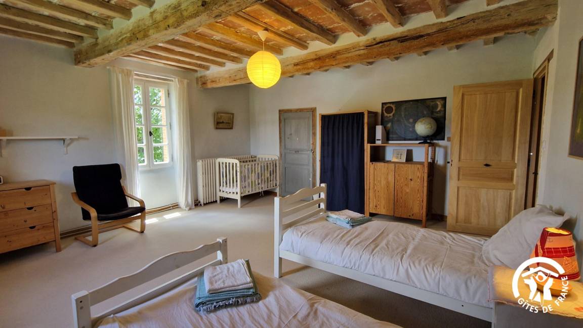 „La Closerie des Cabanes est un magnifique lieu pour passer de vacances isolées et au calme. Nous avons été charmé par la bâtisse principale, ses pièces volumineuses (chambres, cuisines, espace bibliothèque/salle de jeux,..) et ses espaces extérieurs! Nous étions 3 couples avec enfants et nous avons pas eu du tout la sensation d'être collés les uns aux autres ! Nous ne sommes pas sortis de la semaine, car l'espace piscine est plus qu'agréable, surtout avec la chaleur du mois d'août. Le grand jardin, est parfaitement entretenu et dispose d'une cabane pour enfant. La cuisine, ou nous avons passé beaucoup de temps est équipée comme il faut. Présence de 2 frigidaires, ce qui est vraiment top quand on est nombreux sur place. La mise à disposition de draps et de serviettes est très appréciable. Maison isolée, en pleine campagne, les premiers commerces se trouvent à 10mn environ. Marie, maraîchère, vend ses légumes produit dans les potagers du jardin. Quelques petites observation pour améliorer le confort de votre gîte:- mettre à disposition des ventilateurs. Ce fut le point le plus gênant pour nous. En plein août, le thermomètre affichait quasiment 38. Et malgré les grandes chambres, la chaleur était importante. Nous avons dû en acheter afin de pouvoir dormir plus agréablement. - mettre une table basse de jardin (pour l'apéro) plus grande sur la terrasse côté jardin- la gaziniere est ancienne et pourrait être changée. Elle n'est pas assez puissante. Nous l'avons constaté au regard tu temps passé à cuire nos repas. En tout les cas, nous avons un super séjour. Nous reviendrons !“