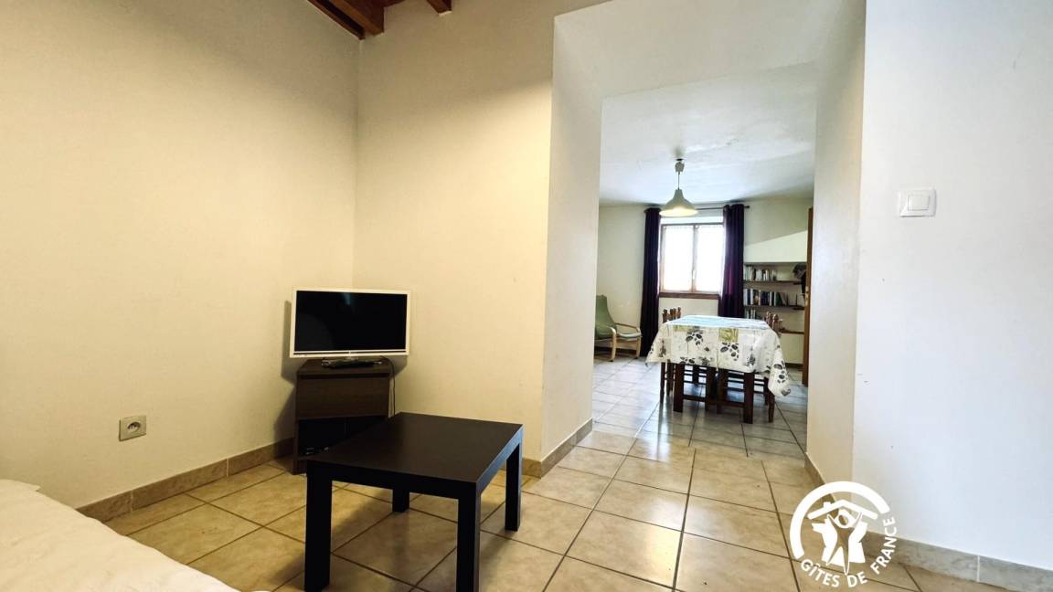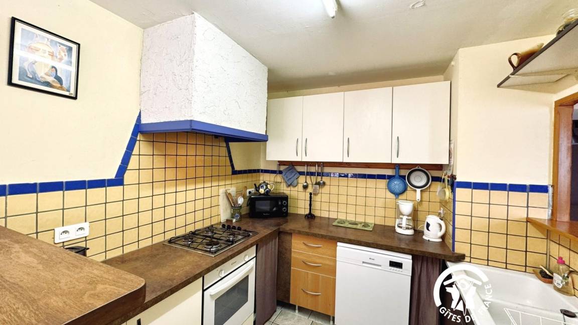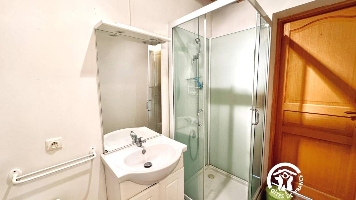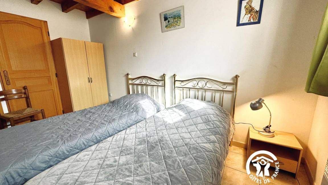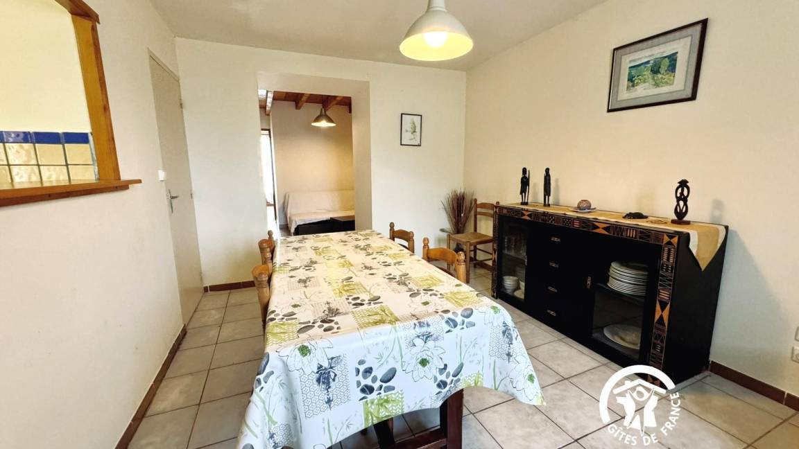 Ferienhaus im Obergeschoss Terrasse mit Gartenmöbeln und Grill, Küche-Esszimmer und Aufenthaltsraum (Möglichkeit einer zusätzlichen schlafen auf Schlafsofa), 1 CH 2 Betten 90, 1 CH mit 1 Bett 140, Dusche und WC. Elektroheizung und Gebühren enthalten. Parken.