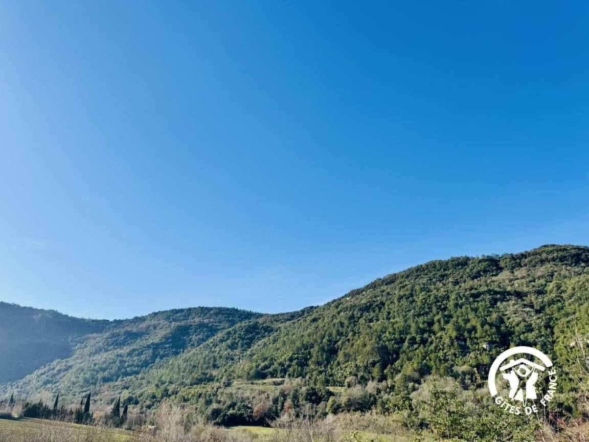 „Maison bien située tout confort très calme et belle vue sur la montagne très verdoyant excellent petit marché le mardi soir boulanger qui passe tous les matins“