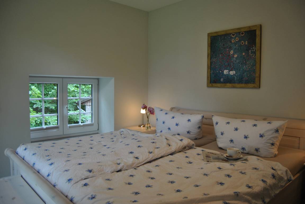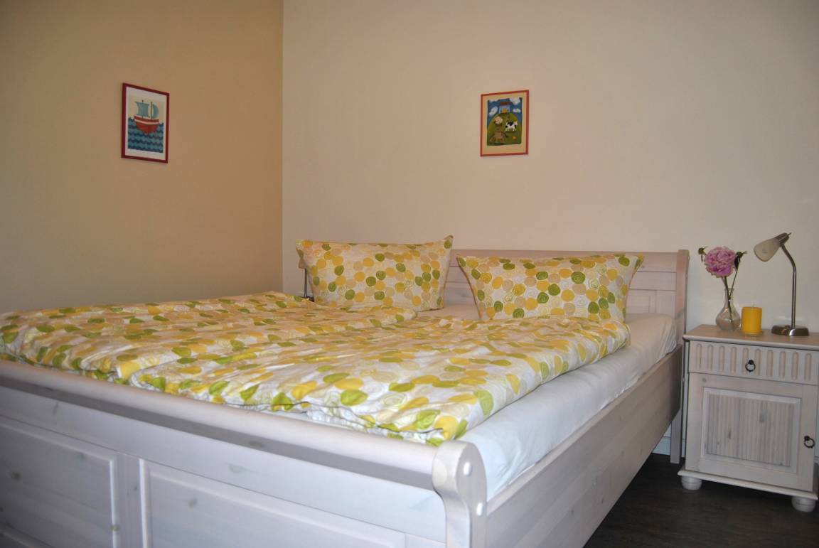 Ebenfalls im Obergeschoss sind die drei Schlafräume der Wohnung. Zwei Zimmer besitzen je ein großes Doppelbett, das dritte Schlafzimmer ist mit einem Etagenbett ausgestattet.