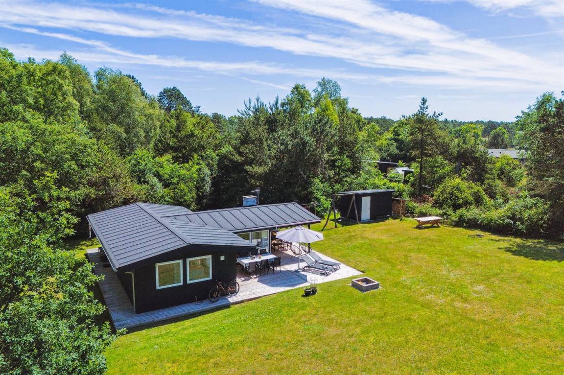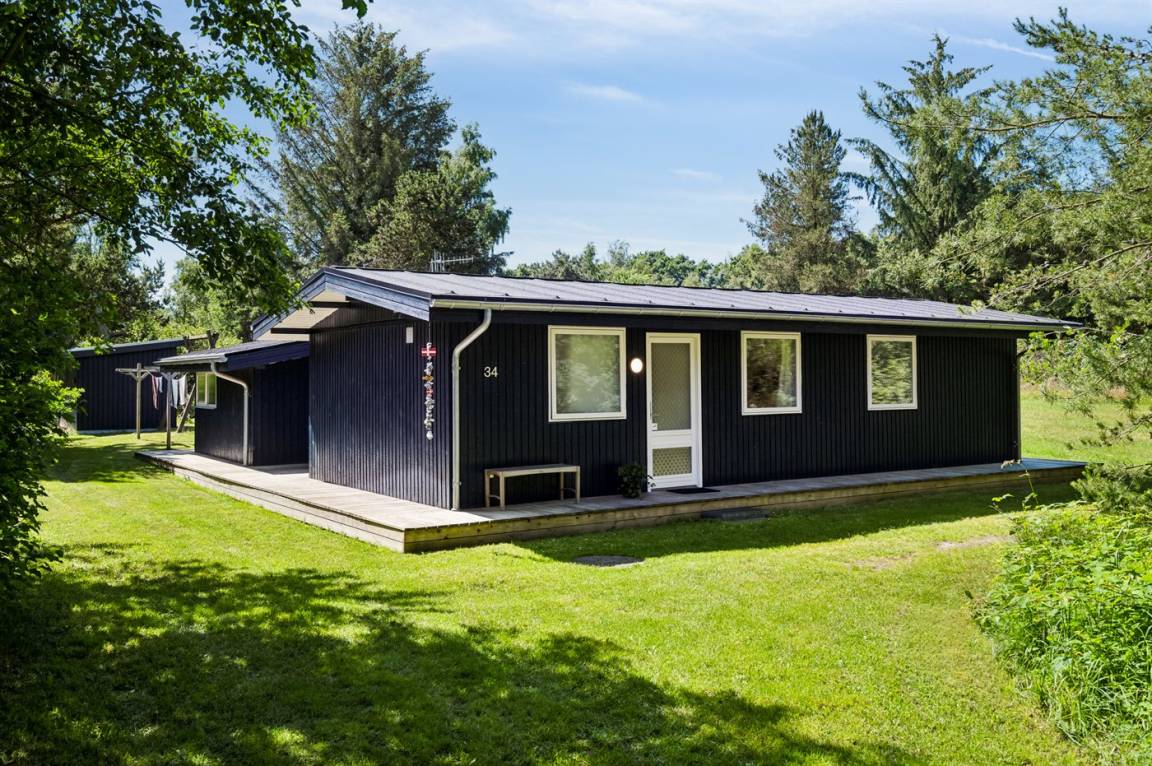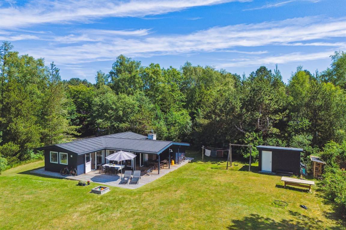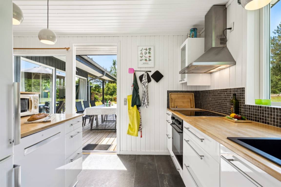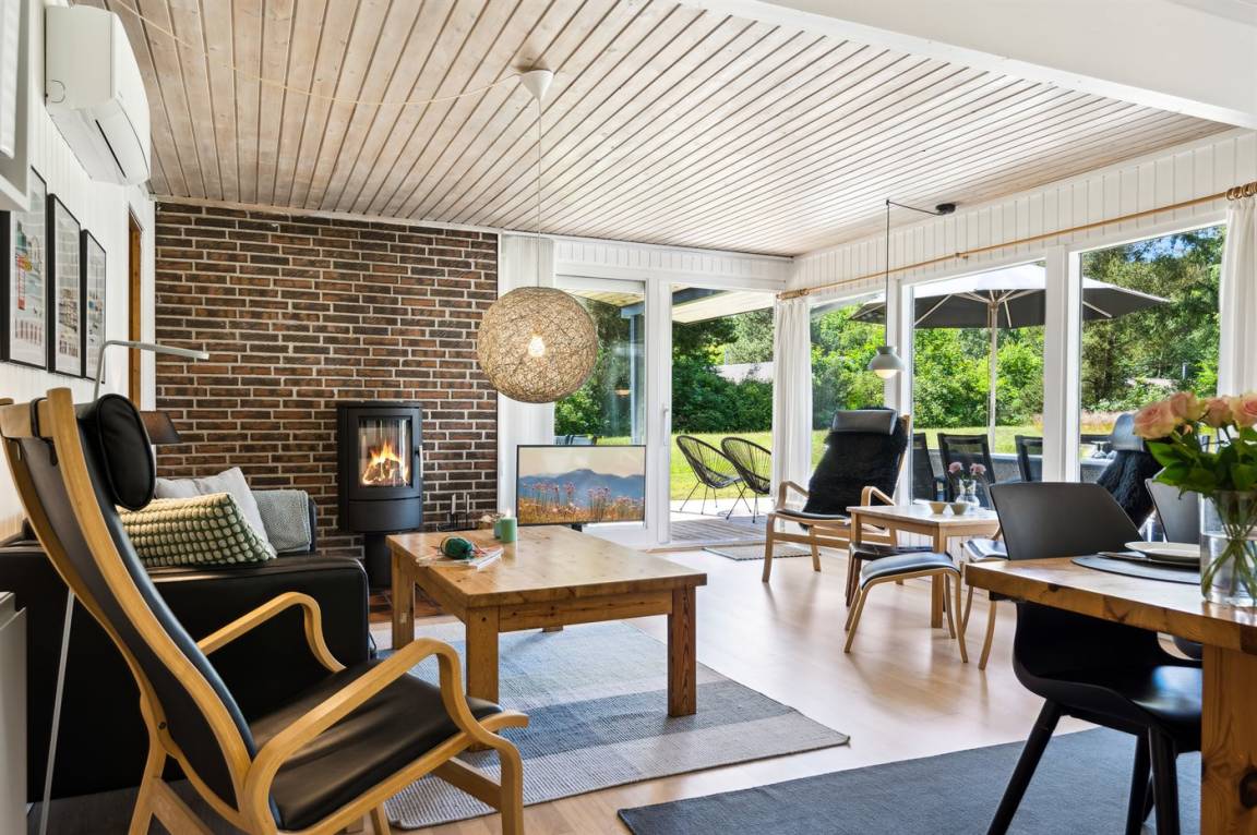 Das Ferienhaus verfügt über eine fantastische und große Terrasse, die teilweise überdacht ist. Hier hast du gute Möglichkeiten, Stunden im Freien zu verbringen, wo du ein Glas Wein, eine Tasse Kaffee genießen oder dich mit einem guten Buch entspannen kannst. Die Lage ist völlig ungestört, sodass du die Umgebung in Ruhe genießen kannst. Auf dem großen Grundstück gibt es viel Platz für Ballspiele und andere Aktivitäten um Freien.