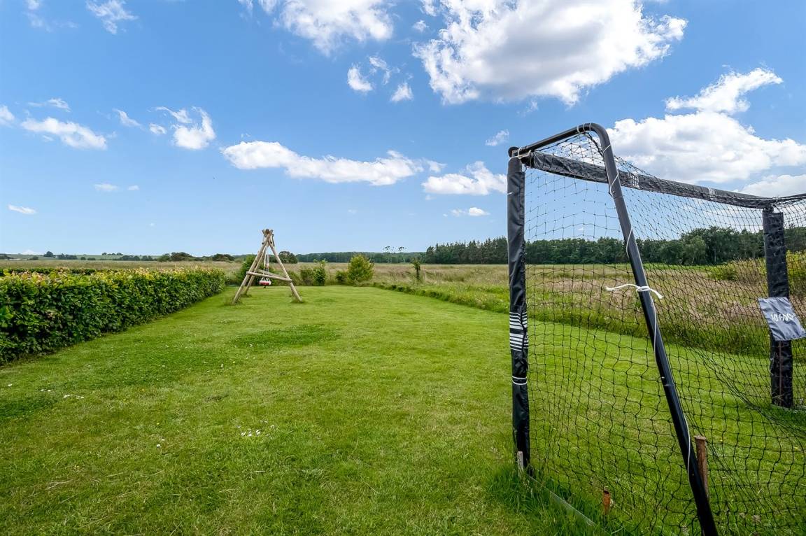 Das Haus liegt in einem relativ neuen Viertel am Ende einer Sackgasse. Von hier aus hat man vom Wohnzimmer aus einen Blick auf eine schöne Wiese, auf der man Glück haben kann, alles von Mäusebussarden bis hin zu Damwild zu sehen.