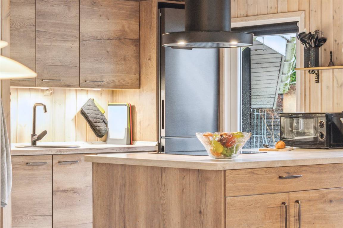KücheDie Küche ist mit Kühlschrank ausgestattet. Außerdem gibt es 4 Induktions-Kochzonen, Umluftofen, Mikrowelle sowie Geschirrspüler.