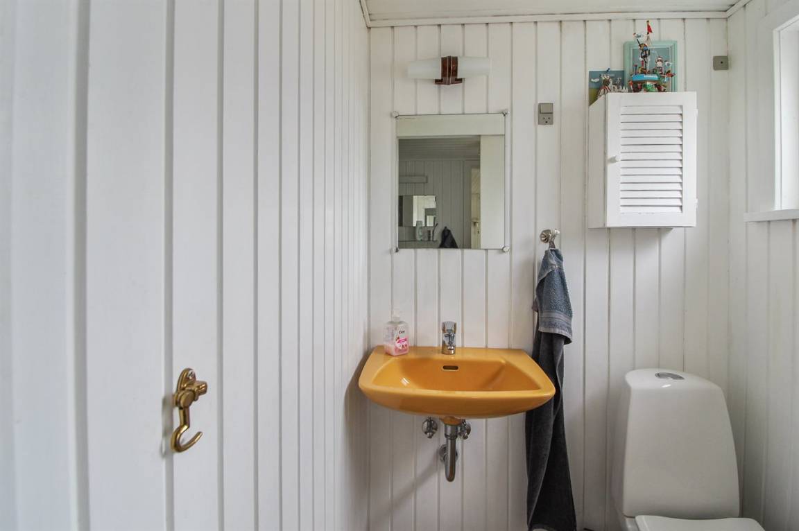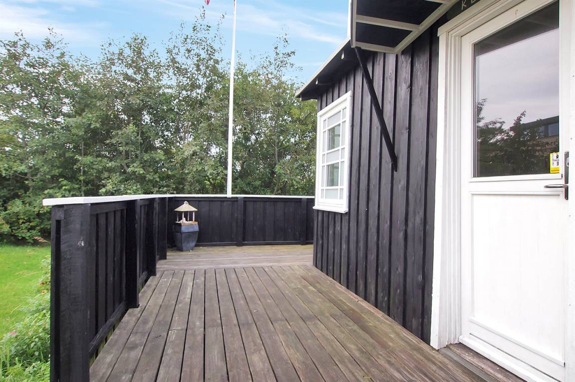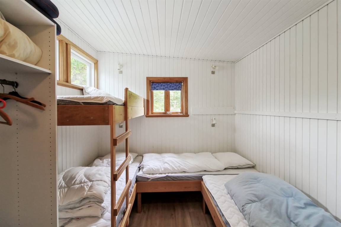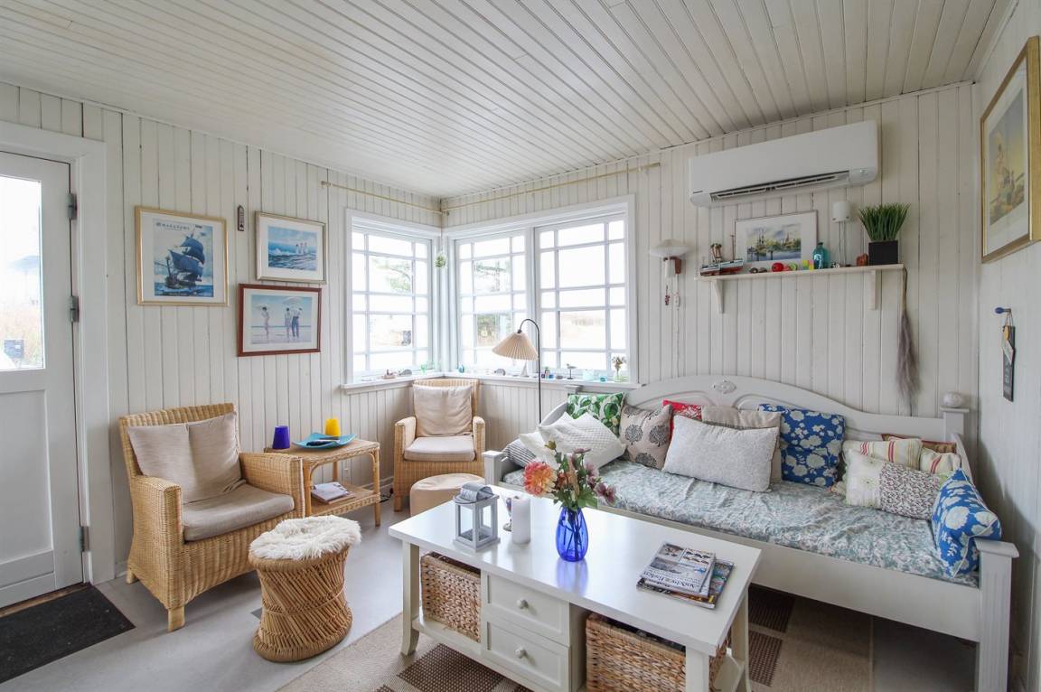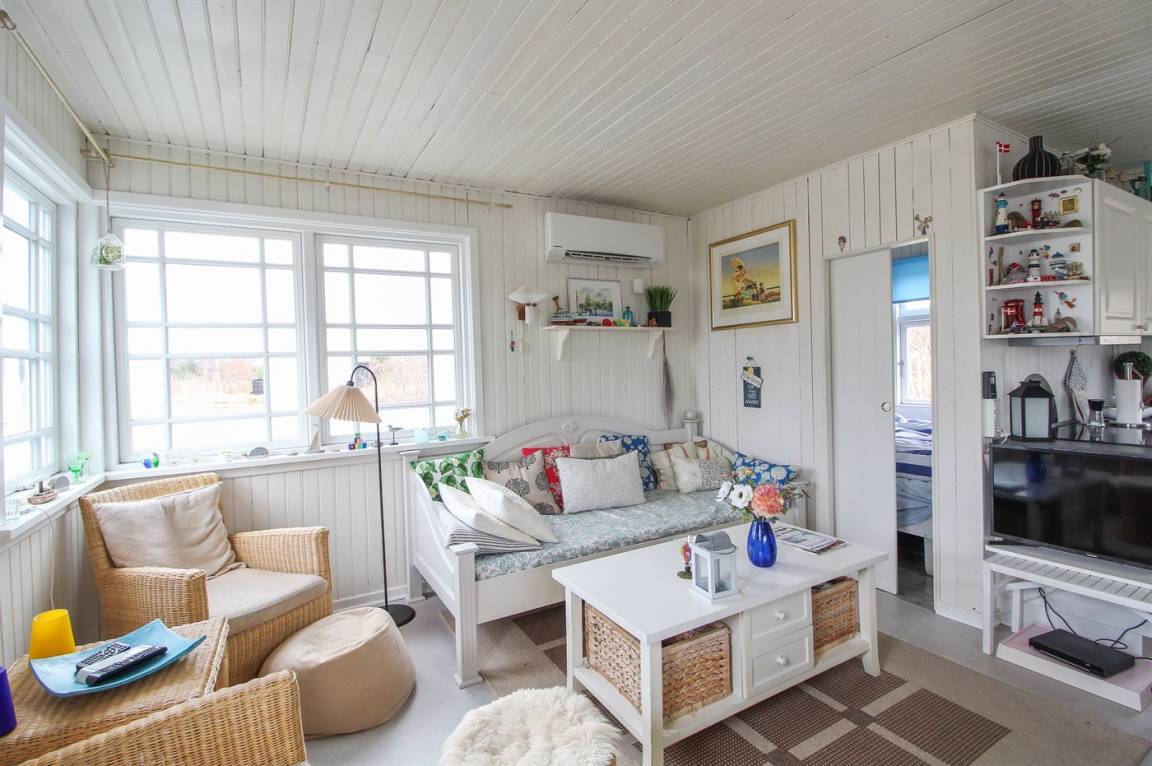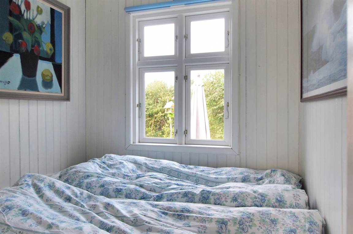 In der zweiten Reihe zum Meer hinaus liegt dieses gemütlich eingerichtete Ferienhaus auf einem kleinen Grundstück dicht an einem schönen, kinderfreundlichen Badestrand. Übrigens: Das Einzelbett steht im Wohnzimmer.