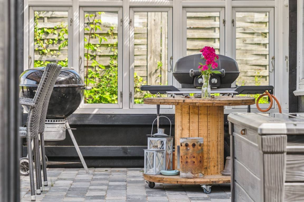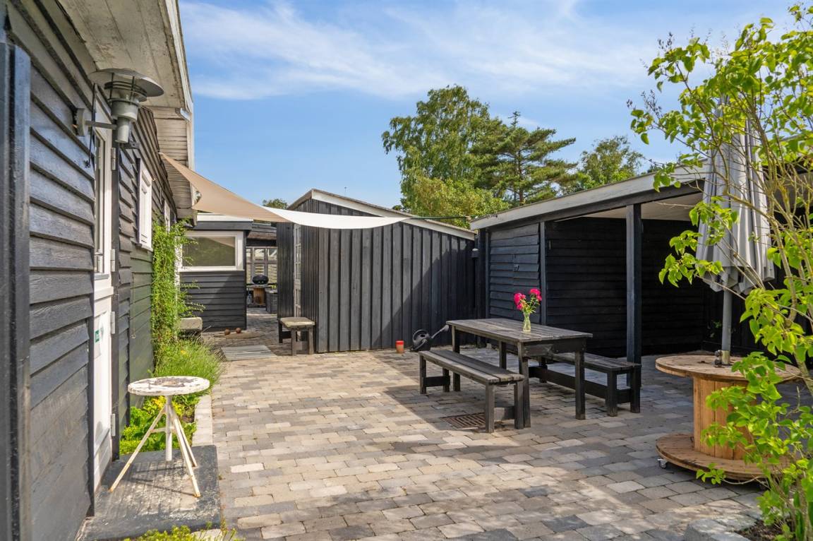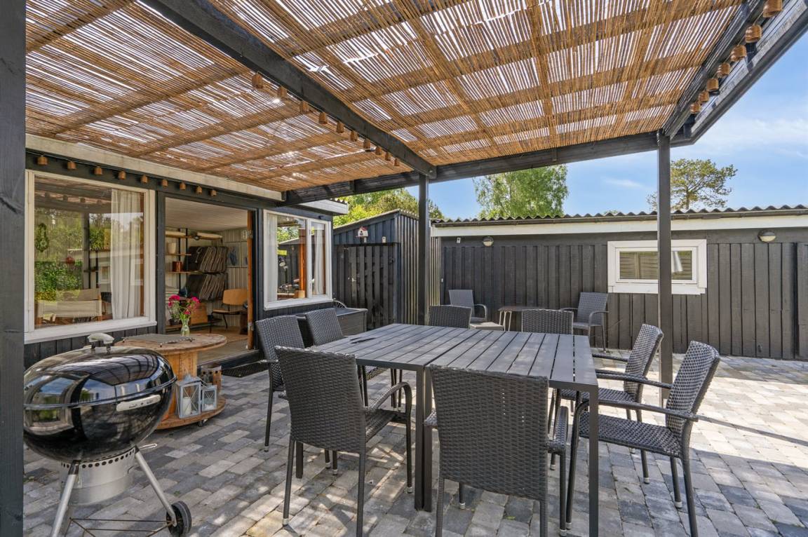 Das Ferienhaus liegt ganz ungestört auf dem schönen Grundstück und hat einige gute Terrassenbereiche, die auch teilweise überdacht sind. Von hier aus kannst du die herrliche Umgebung mit einer Tasse Kaffee oder einem Glas Wein genießen, und es ist immer möglich, eine windgeschützte Ecke zu finden, um die Sonne zu genießen.