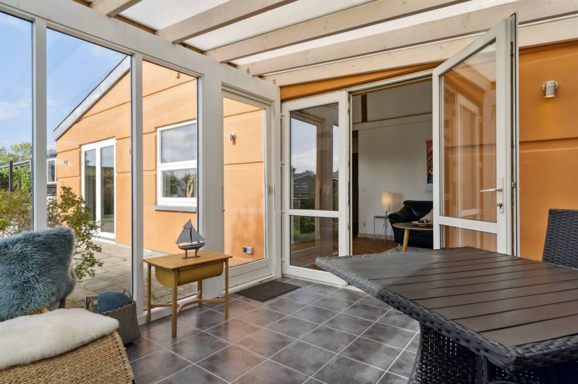 Im Inneren der Hauses finden Sie u. a. gemütliche Ecken und ein geräumiges Wohnzimmer mit Kaminofen. Draußen gibt es mehrere Terrassen und einen oft genutzten Wintergarten, der sich ganz besonders für die langen Sommerabende eignet.