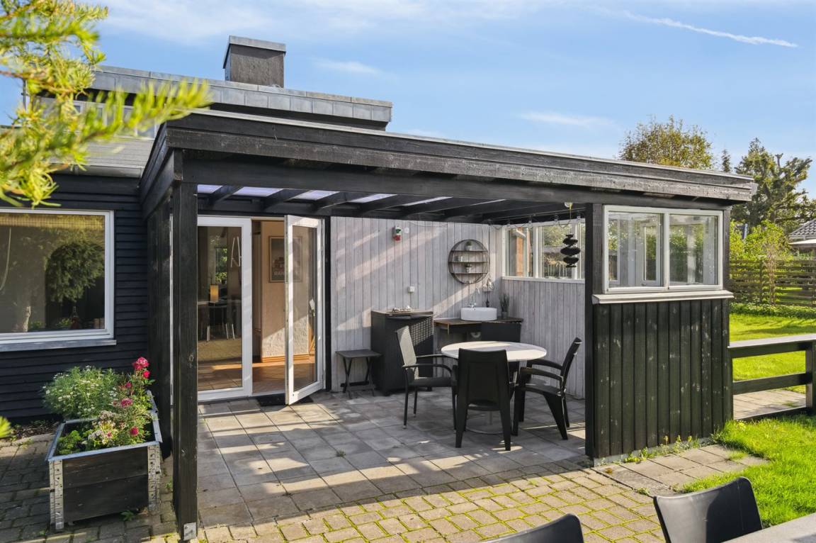 DraußenDie Ferienunterkunft liegt auf einem 650 m² großen Naturgrundstück. Die Entfernung zum Meer beträgt 300 m. Die nächste Einkaufsmöglichkeit liegt 1000 m entfernt. Es steht ein offenes Terrassenareal zur Verfügung. Außerdem gibt es überdachte Terrasse. Zutritt zu einem Wintergarten. Es steht ein Carport zur Verfügung. Parkplatz auf dem Grundstück.