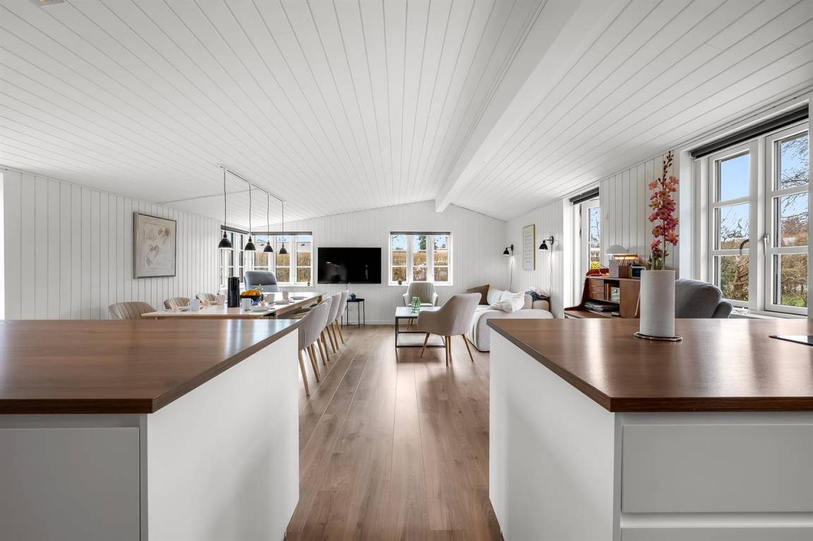 Das Ferienhaus präsentiert sich in sehr gutem Zustand, hell und modern sowie mit einer durchdachten Raumaufteilung. Das Herz des Hauses ist die große offene Küche mit Essbereich, die in direkter Verbindung zum Wohnzimmer steht. Hier kann sich die ganze Familie versammeln und gemeinsam entspannen, und von hier aus hast du direkten Zugang zu den schönen Terrassen. Das Haus hat eine Wohnfläche von 105 m² und bietet damit ausreichend Platz, zum Beispiel für eine Familie mit 2–3 Kindern oder sogar für zwei kleinere Familien, die ihren Urlaub in dieser schönen Umgebung genießen möchten. Es ist außerdem erlaubt, den vierbeinigen Freund der Familie mitzubringen. Zwei der Schlafplätze befinden sich in einem gemütlichen Gästehaus, das sich ideal für größere Kinder eignet.