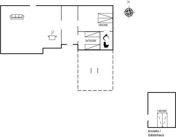 SchlafverhältnisseDie Schlafplätze verteilen sich auf 3 Schlafräume. 2 Schlafplätze in einem Doppelbett. 2 Schlafplätze in Einzelbetten. 2 Schlafplätze auf einer Doppelschlafcouch. 2 von diesen Schlafplätzen befinden sich im Gästehaus.